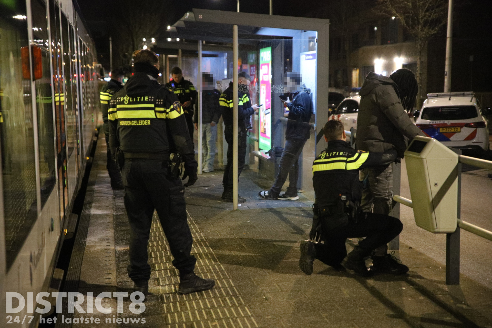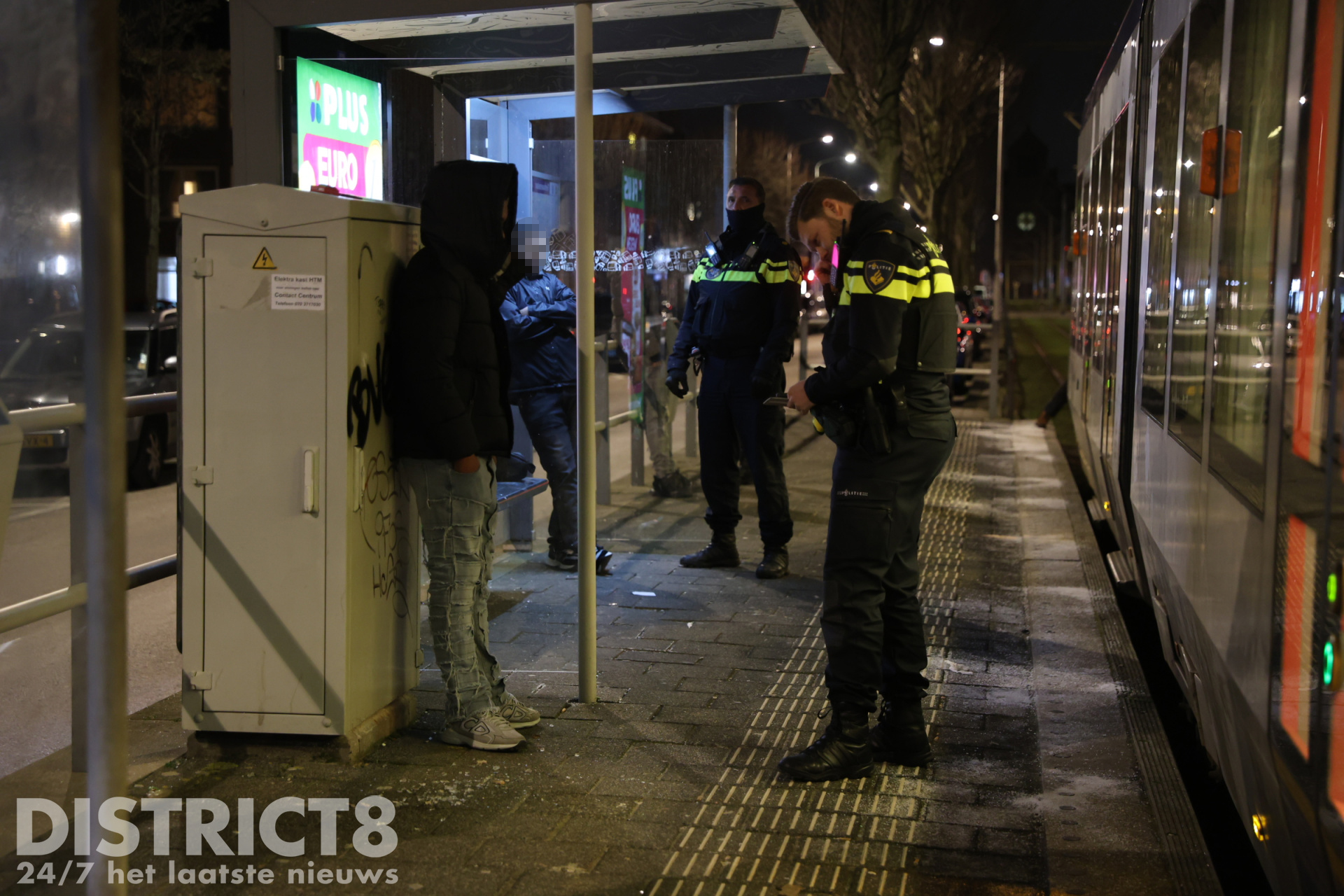 Meerdere politie-eenheden kwamen met spoed ter plaatse bij de halte. Drie jongeren werden door de politie uit de tram gehaald. Zij zijn gefouilleerd en aangemerkt als verdachten. De drie jongeren zijn niet aangehouden.