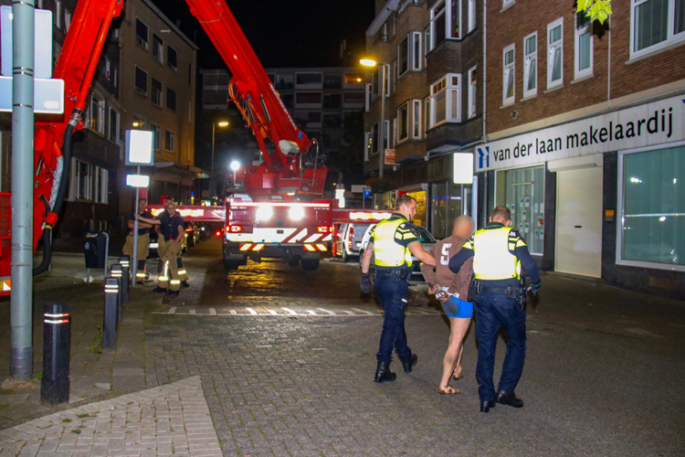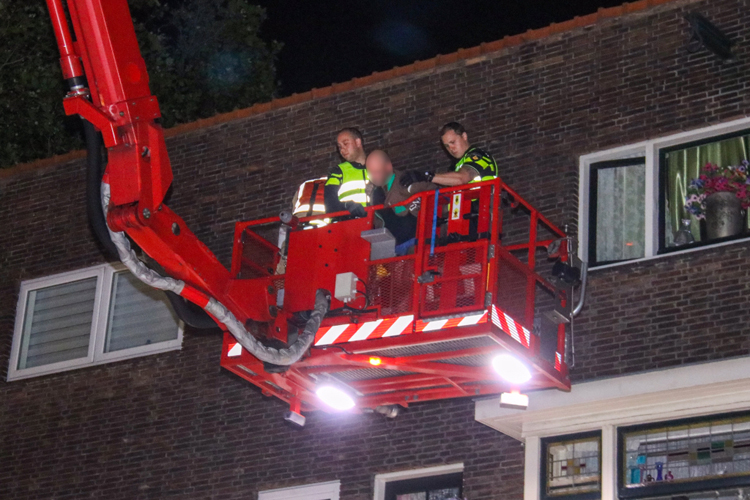 Schiedam – In de nacht van zaterdag op zondag is de brandweer gealarmeerd door de politie om een man van het dak te halen op de Korte Singelstraat.