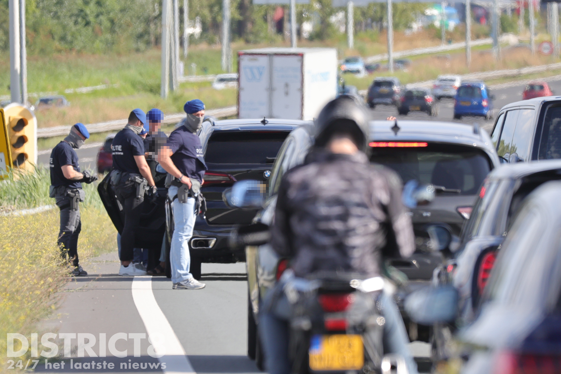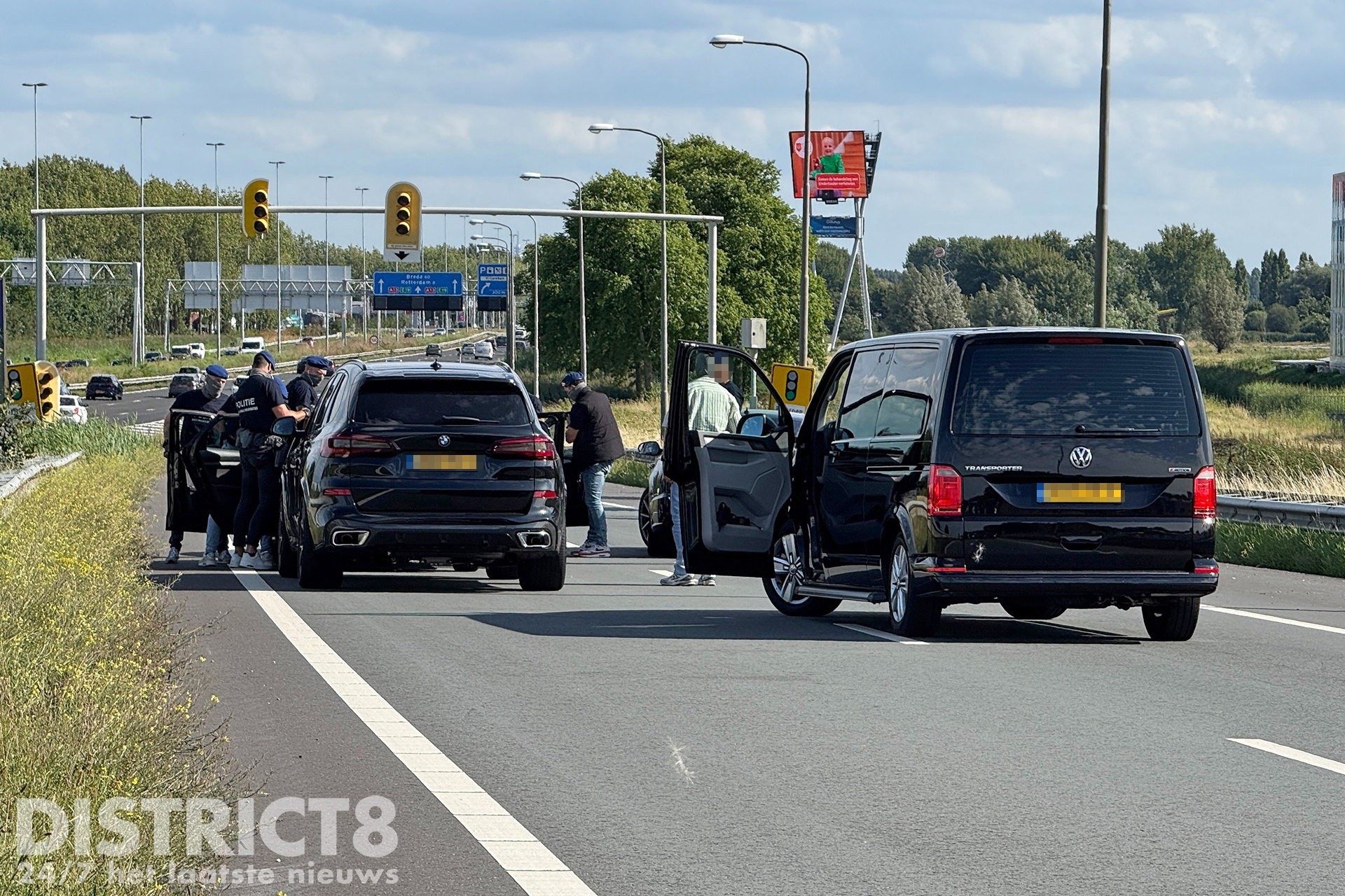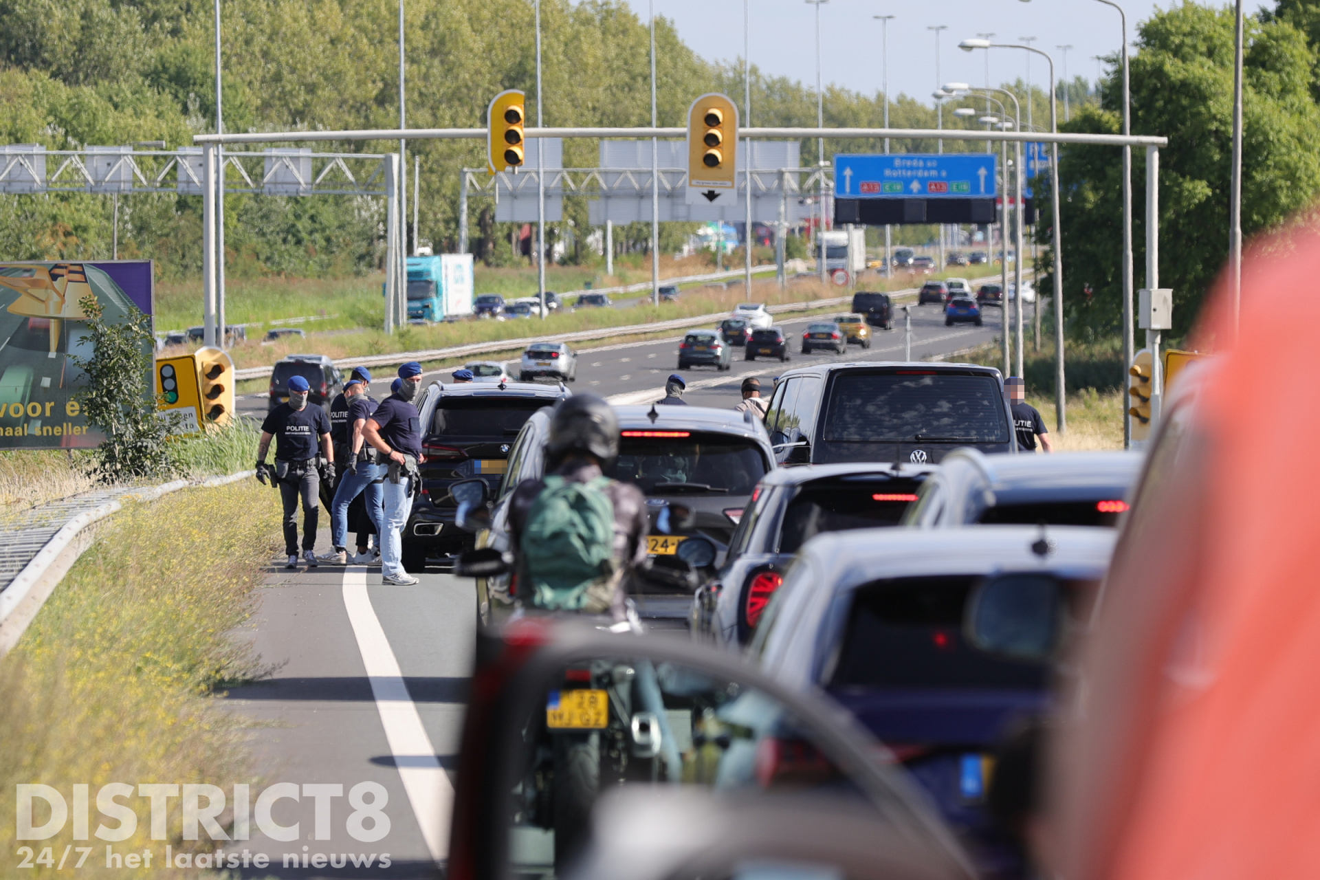 De oprit werd tijdelijk afgesloten vanwege een actie van de Dienst Speciale Interventies (DSI). Onder toeziend oog van enkele automobilisten werd een voertuig klemgereden en werden de twee inzittenden, een man en een vrouw aangehouden. Bij de arrestatie was ook een motor van de DSI aanwezig. De man is geblinddoekt afgevoerd naar een politiebureau, de vrouw is ook afgevoerd.