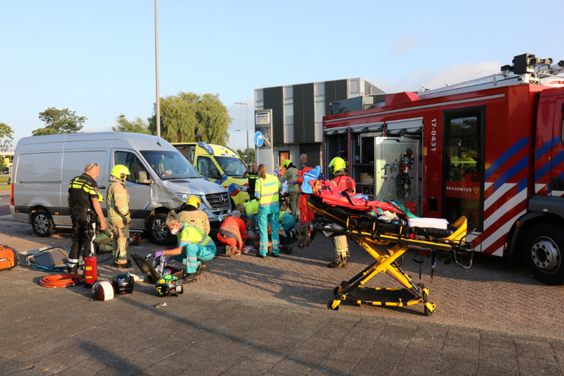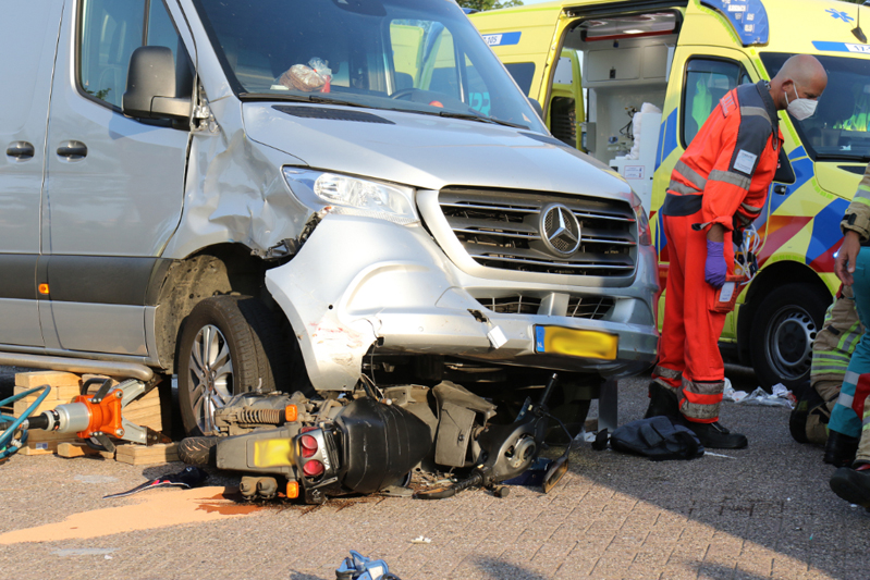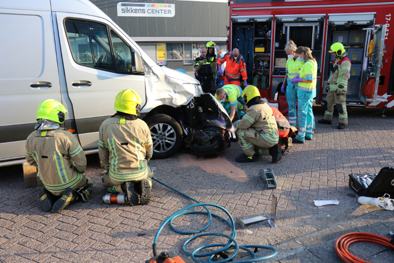 Rotterdam – Op de Linschotenstraat heeft donderdagochtend een ernstig ongeval plaatsgevonden tussen een scooter en een bestelbus. Bij het ongeval kwam de scooter onder de bus terecht en raakten de opzittenden van de scooter bekneld.