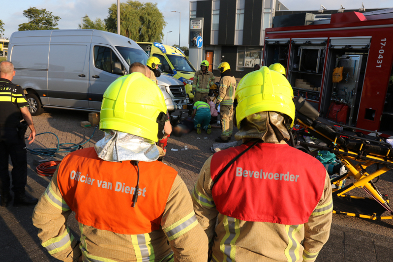 De brandweer heeft de man en de vrouw onder het busje vandaan kunnen halen met behulp van het hydraulisch redgereedschap. Beiden zijn met spoed vervoerd naar het ziekenhuis.