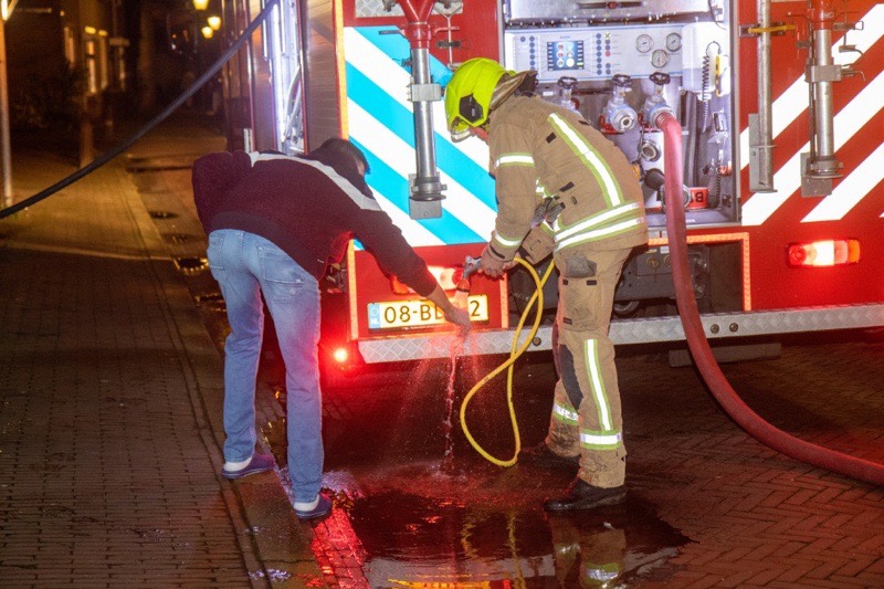 Buiten werd zijn arm gekoeld met water door de brandweer tot de ambulance ter plaatse was om de man verder na te kijken.