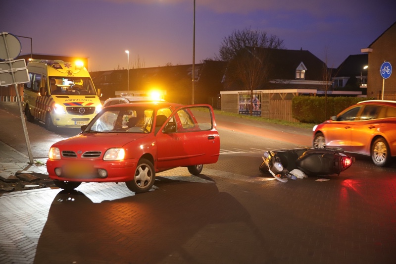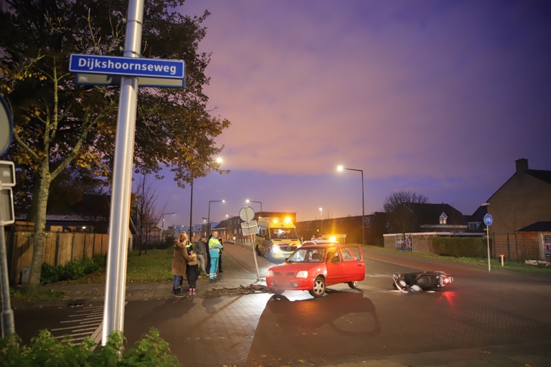 Den Hoorn – De bestuurder van een scooter is maandagochtend 25 november gewond geraakt bij een aanrijding met een auto op de kruising van de Dijkshoornseweg met de Kristalweg in Den Hoorn.