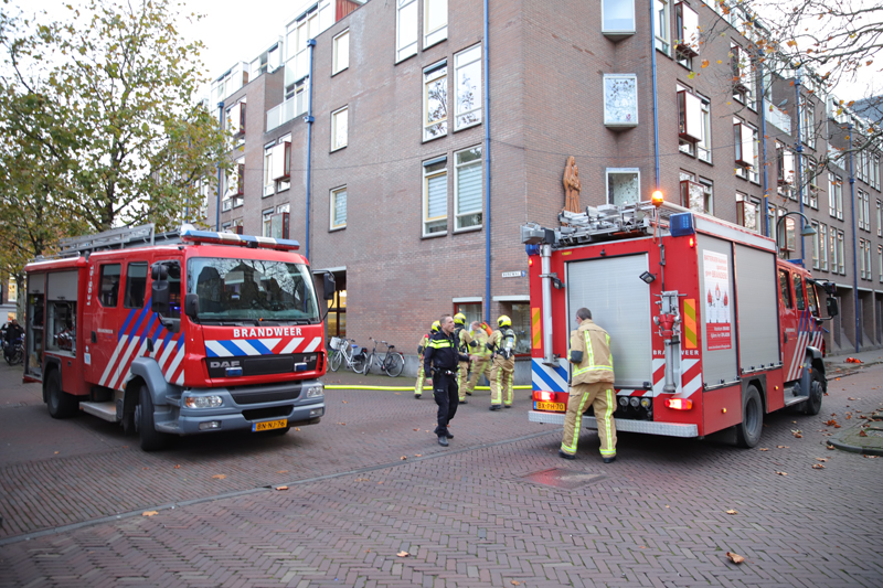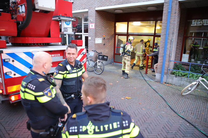 De brandweer heeft de gang geventileerd. Hoe de brand precies is ontstaan is onbekend.