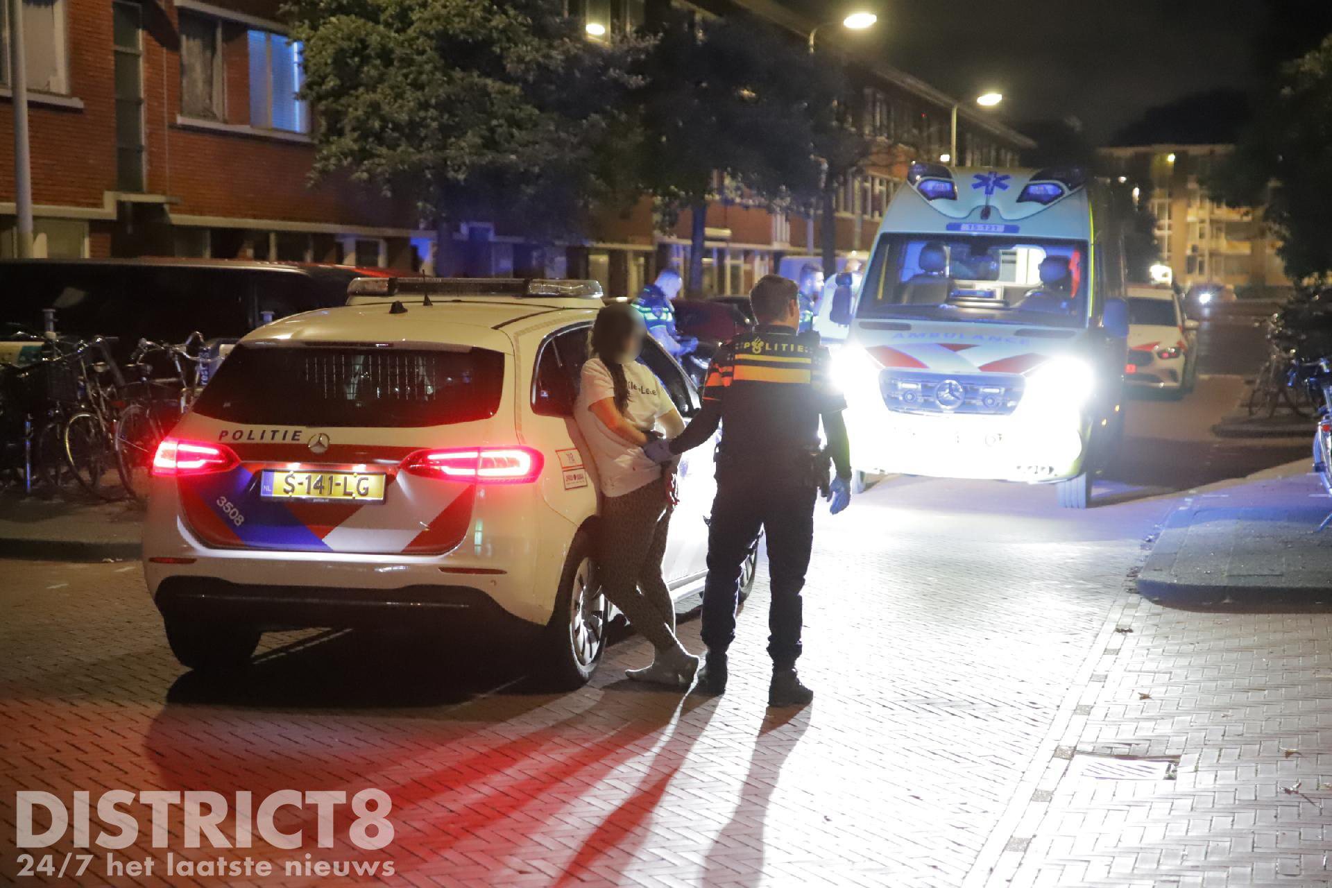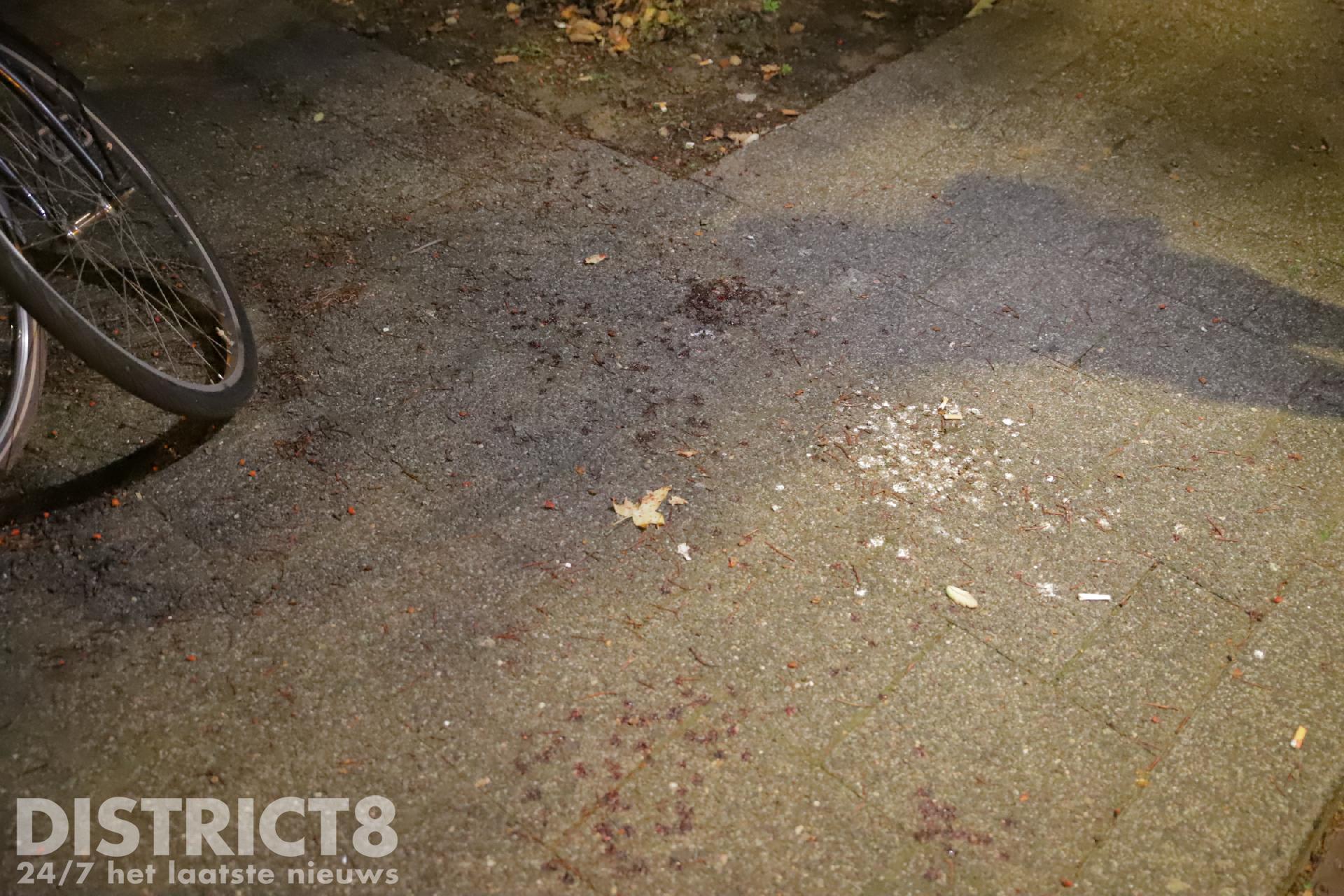 Een vrouw is ter plaatse door de politie aangehouden. De man raakte gewond aan zijn arm. Zijn T-shirt zit onder het bloed.