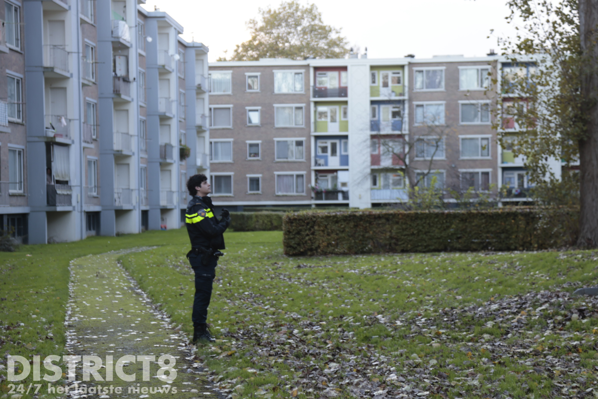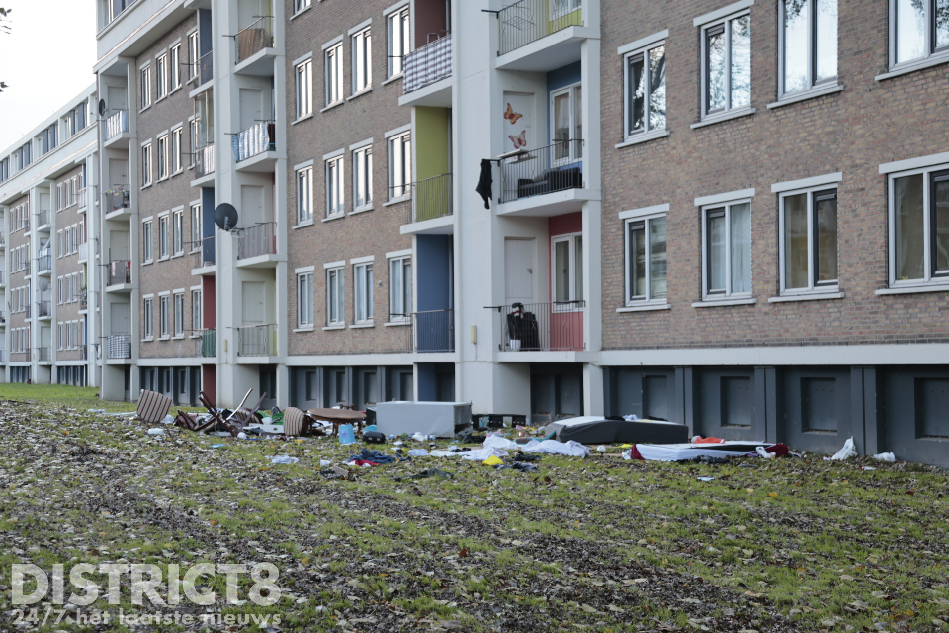 De man is in een woning op de vierde etage van een portiek aan de Melis Stokelaan in Den Haag. Waarom de man al zijn spullen naar buiten gooit is niet bekend. De politie, de brandweer en de ambulancedienst zijn ter plaatse. Een onderhandelaar van de politie is met de man in gesprek.