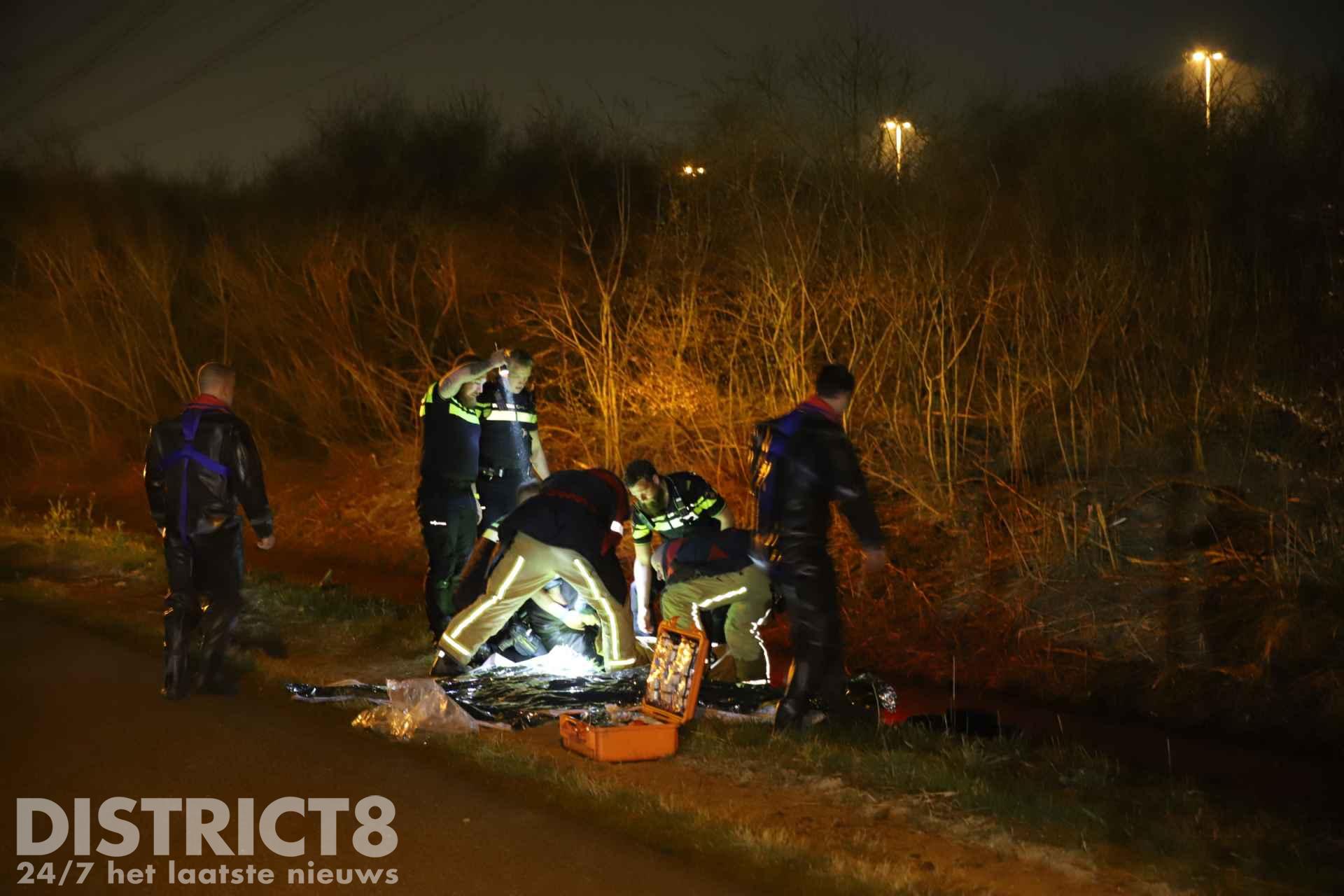 Een voorbijganger reed langs en dacht dat zij een hand uit het water zag steken, toen zij een kijkje ging nemen trof zij de man aan die met zijn benen klem zat in het water, zij belde direct 112.