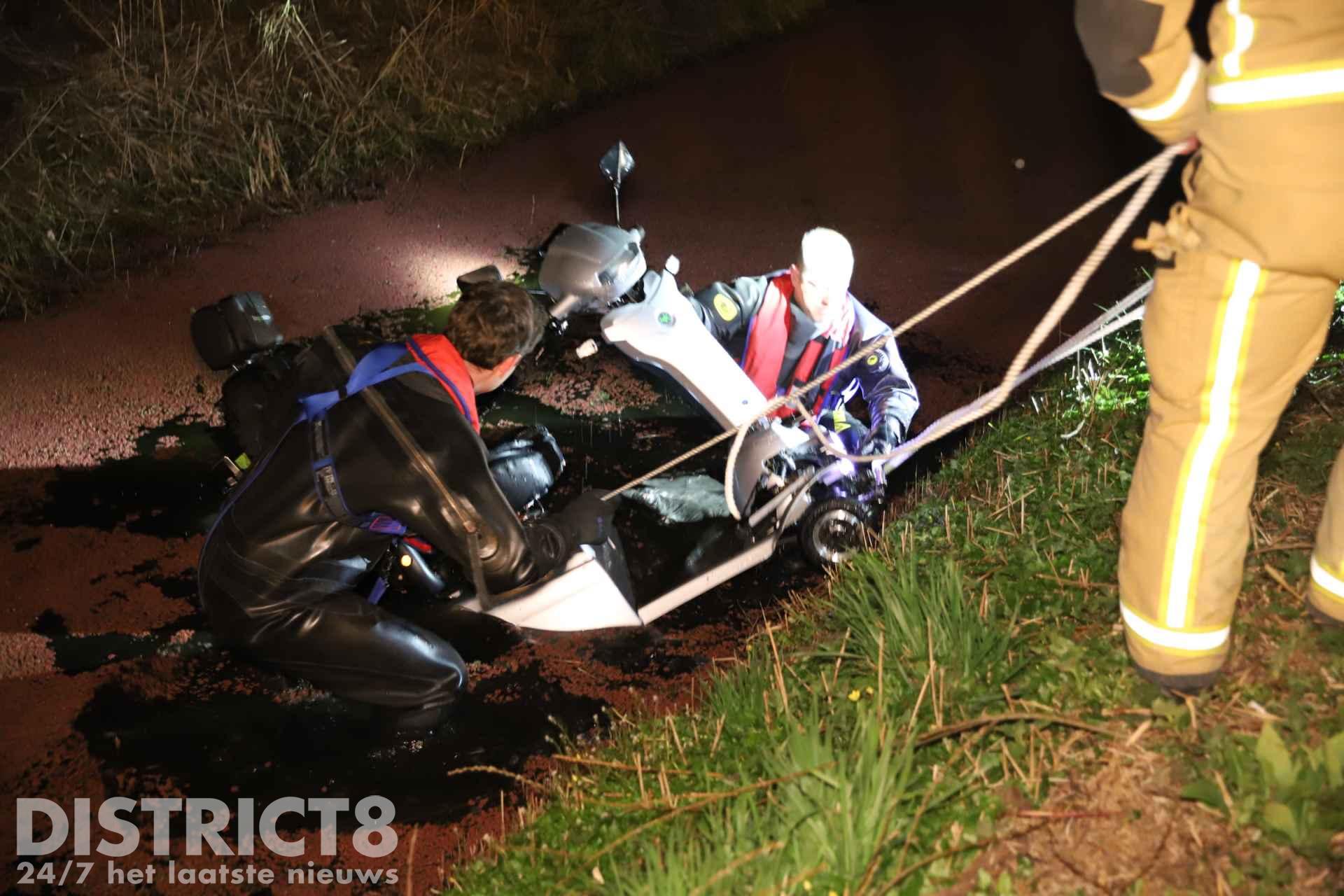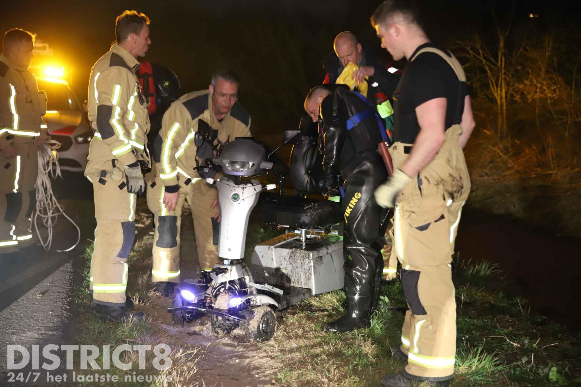 De scootmobiel is door duikers van de brandweer uit het water gehaald. De scootmobiel en het slachtoffer zijn door de politie thuisgebracht.