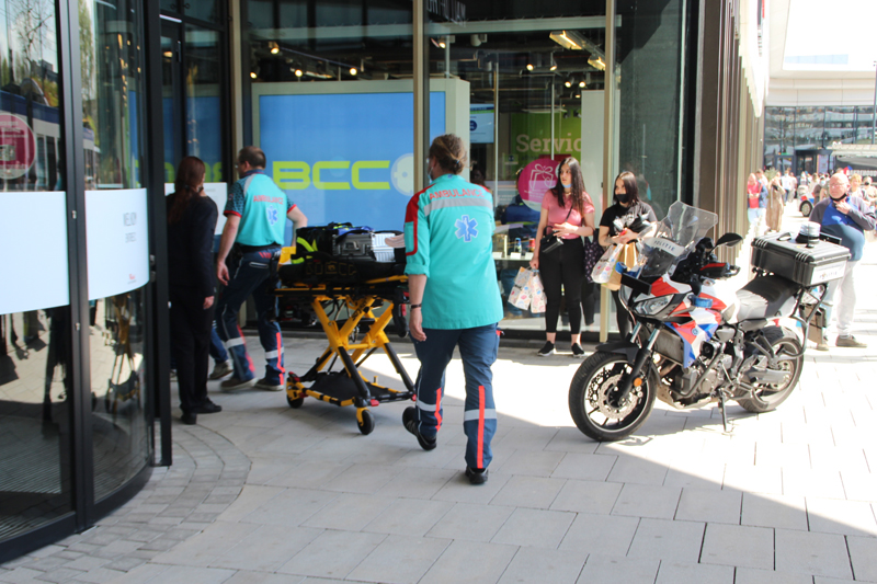 Politieagenten en beveiligers hadden inmiddels een groot deel van het winkelcentrum ontruimd. Agenten, met kogelwerende vesten, en hondengeleiders stonden rondom de winkel terwijl een onderhandelaar in contact probeerde te komen met de verdachte. Na lange tijd heeft de politie besloten in te grijpen, de man is hierna zonder al te veel consternatie aangehouden.