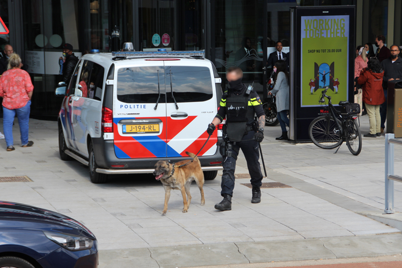 Leidschendam – Woensdagmiddag 12 mei kreeg de politie een melding van een man met een mes in de Westfield Mall of the Netherlands aan de Weigelia in Leidschendam. Direct werden meerdere politie-eenheden gealarmeerd, ook hondengeleiders van de politie kwamen met spoed ter plaatse.