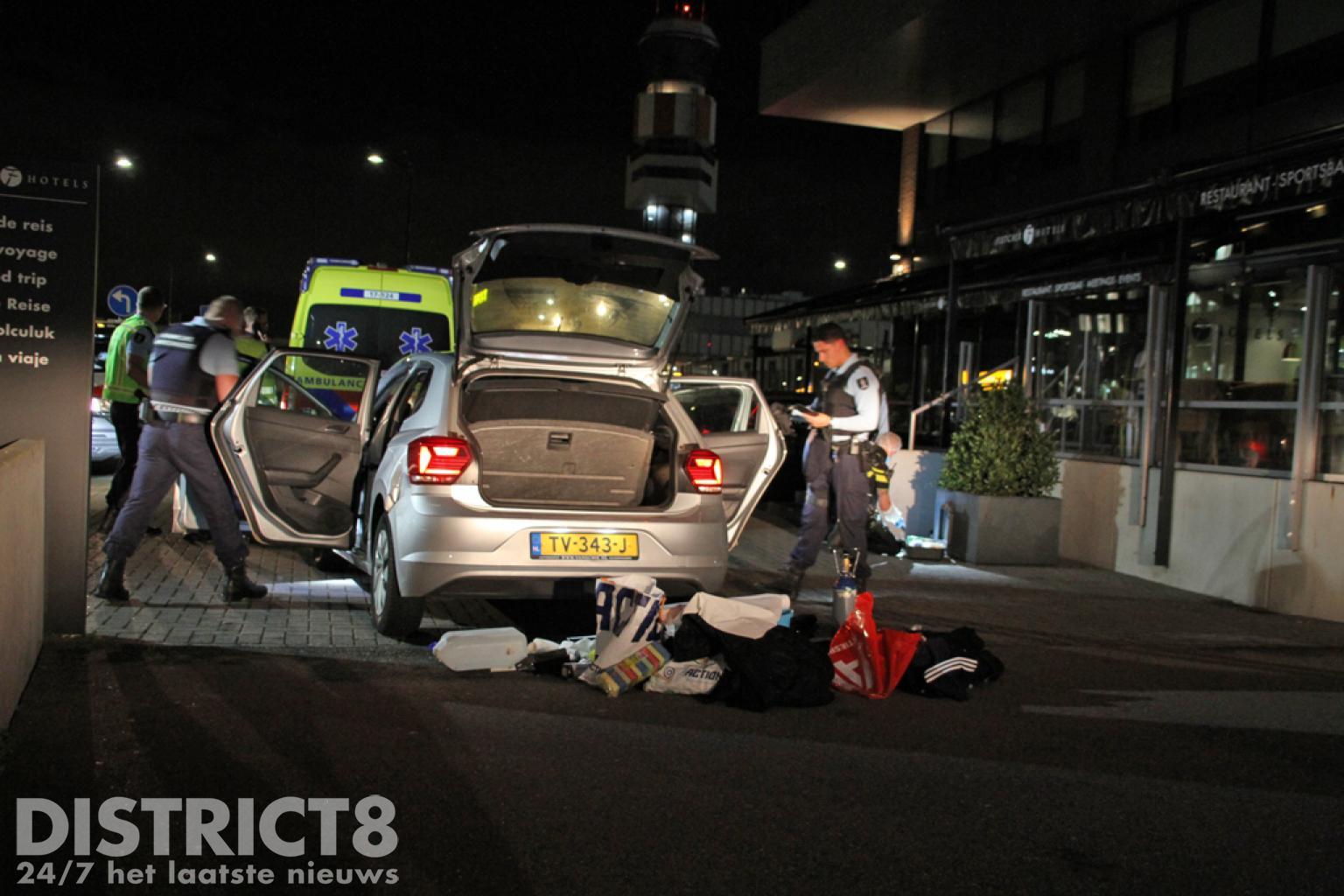 Bij aankomst door medewerkers van de koninklijke marechaussee werden de inzittenden met getrokken wapens uit het voertuig gepraat. Eén van de inzittenden, een man, is hier direct aangehouden. De dame is overgedragen aan het ambulancepersoneel en naar het ziekenhuis vervoerd.