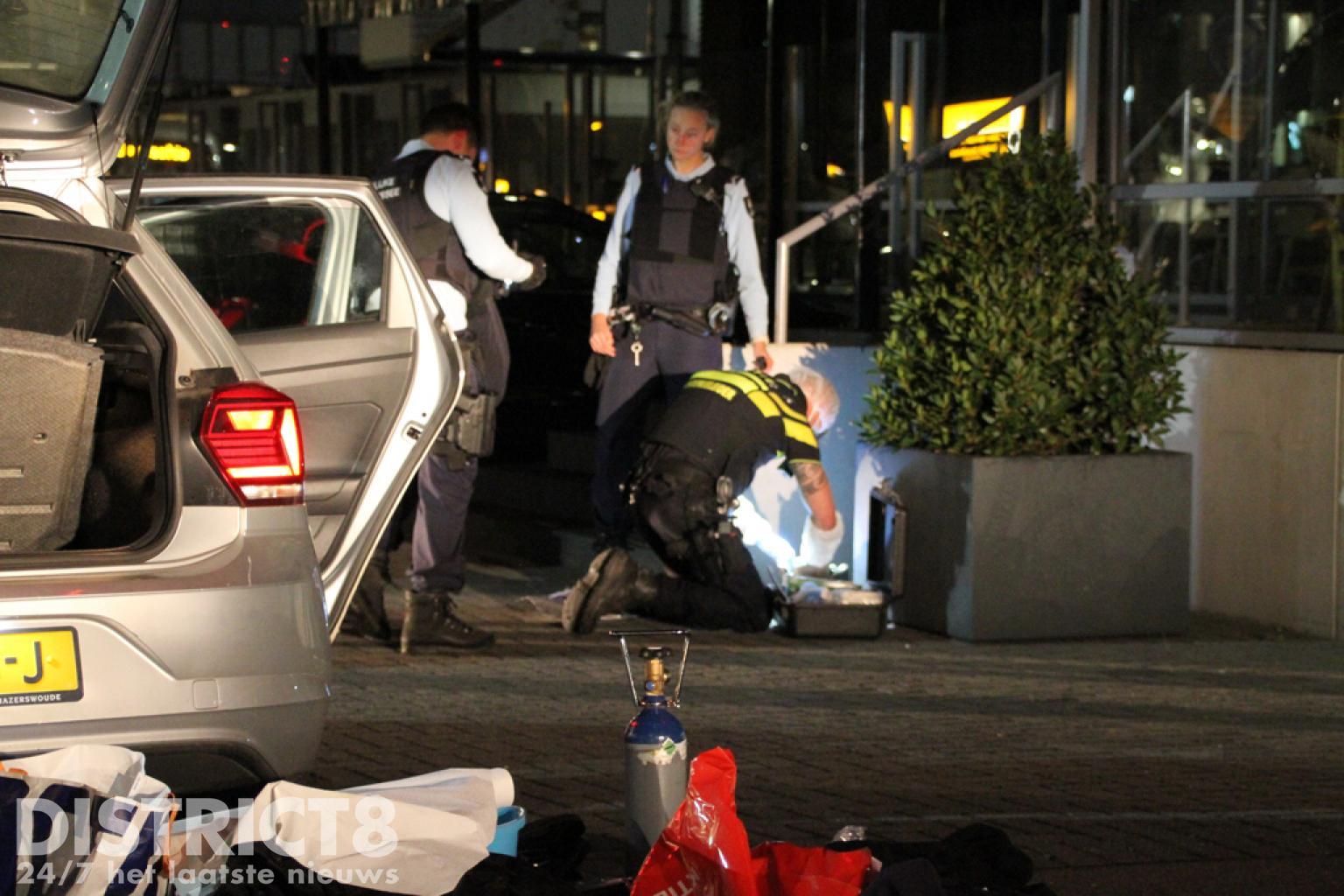 De koninklijke marechaussee heeft bevestigd dat er één persoon is aangehouden. Tijdens het onderzoek in de auto is er een lachgastank en minimaal één, maar mogelijk meerdere vuurwapens gevonden. Een vuurwapen is door de politie onderzocht en in beslag genomen. Er zijn meerdere verklaringen opgenomen door de politie en medewerkers van de koninklijke marechaussee.