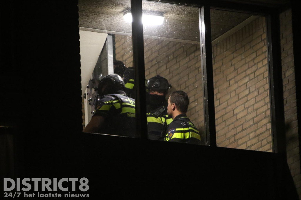 In een woning aan het Oostblok in Delft heeft de politie een verdachte aangehouden. Hij is bij de aanhouding gebeten door een politiehond. De verdachte is hierna gewond overgebracht naar het ziekenhuis.