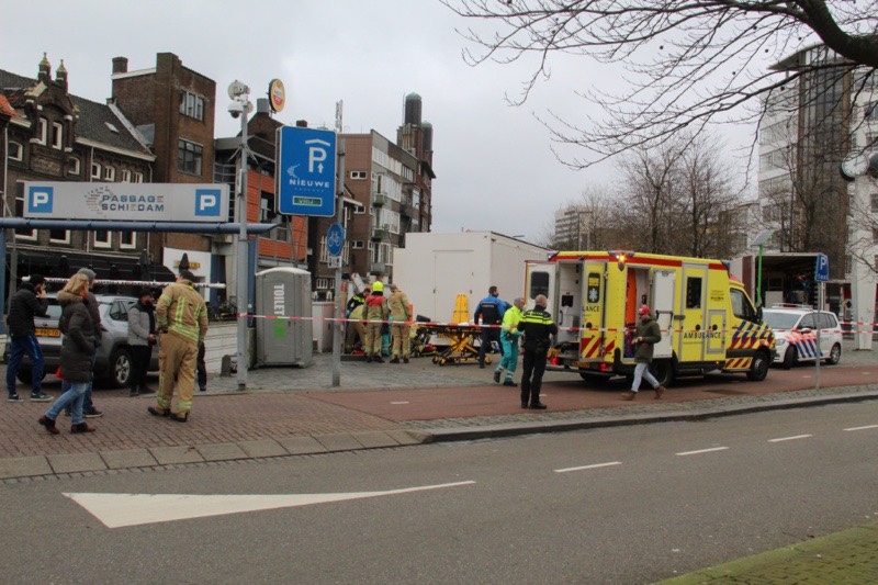 Schiedam – Dinsdagmiddag heeft er tijdens het weghalen van de oliebollenkraam van Nico Sterrenberg aan de Koemarkt een ongeval plaatsgevonden. Hierbij is een man onder een deel van de trailer terecht gekomen.