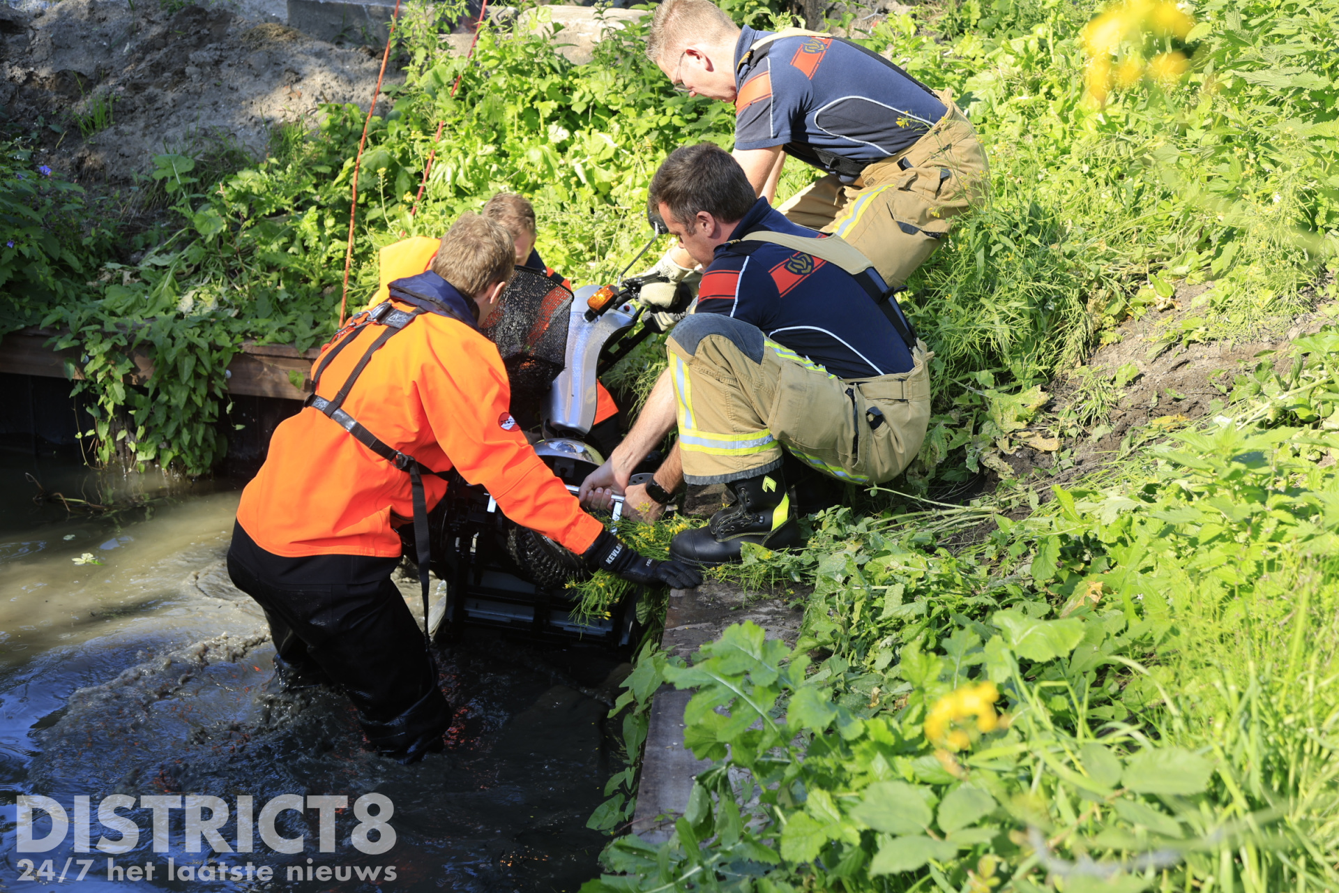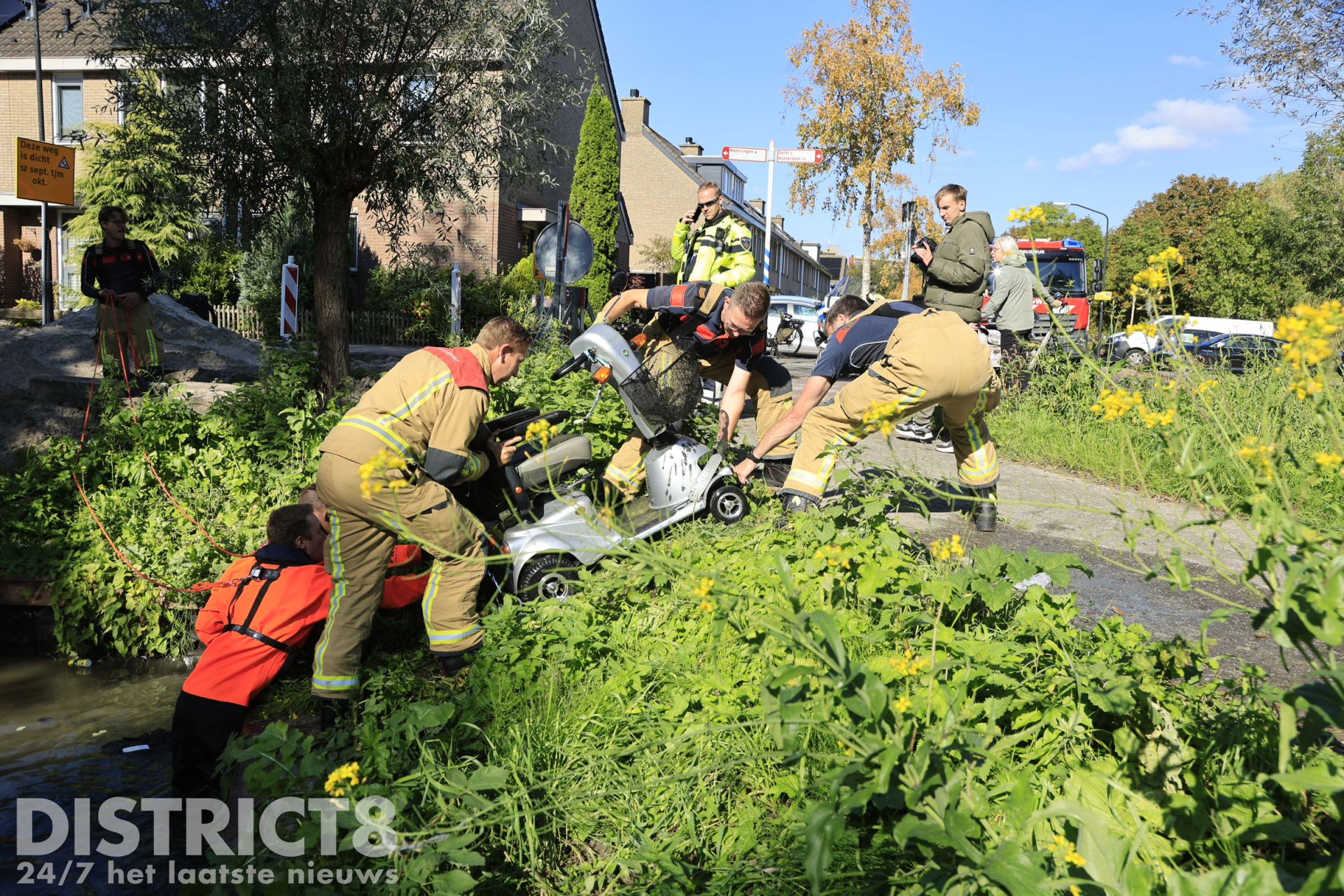 De brandweer van kazerne Rijswijk kwam ter plaatse en heeft de scootmobiel uit het water gehaald. Hoe de man met zijn scootmobiel te water heeft kunnen raken is niet bekend.