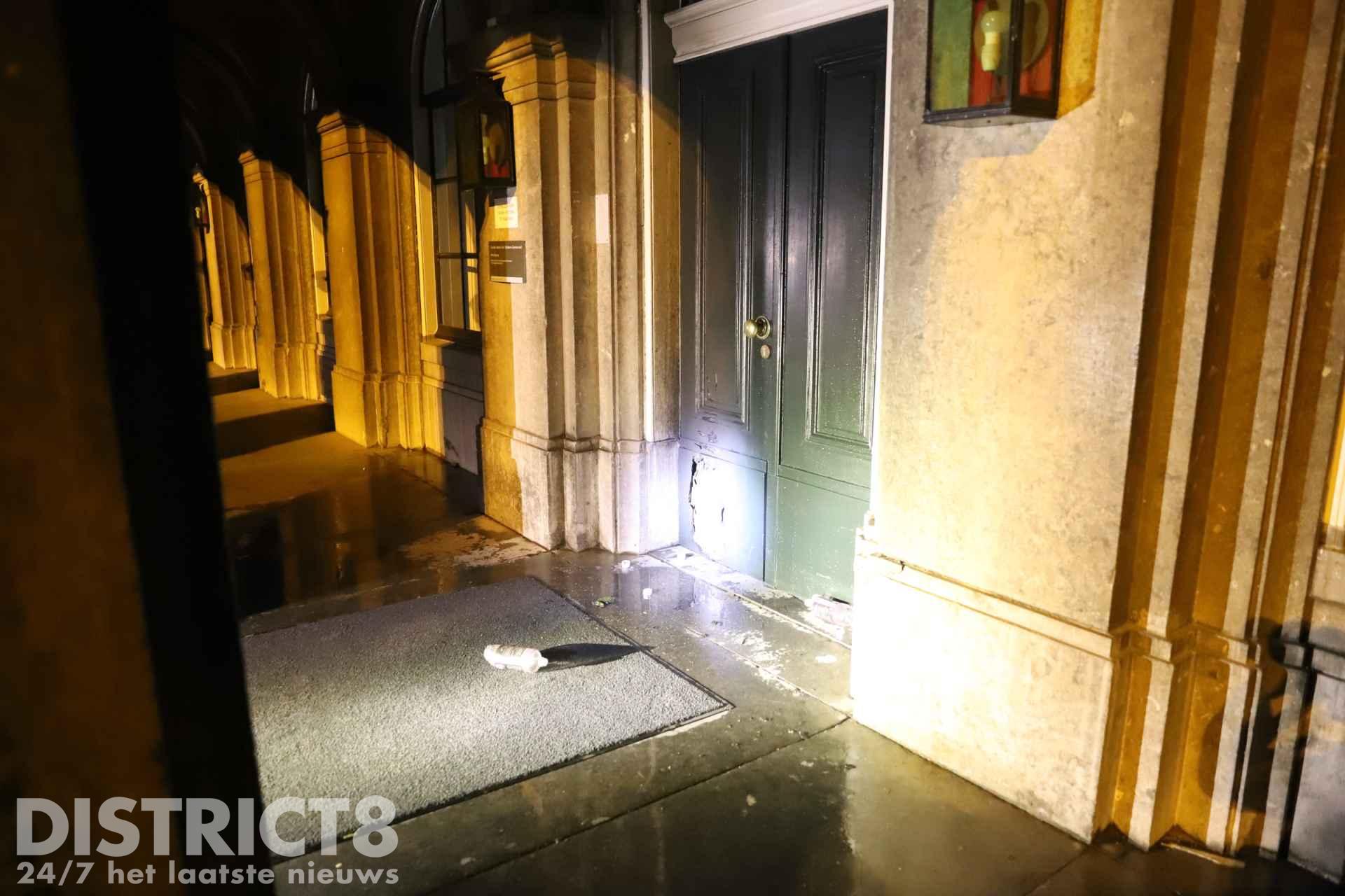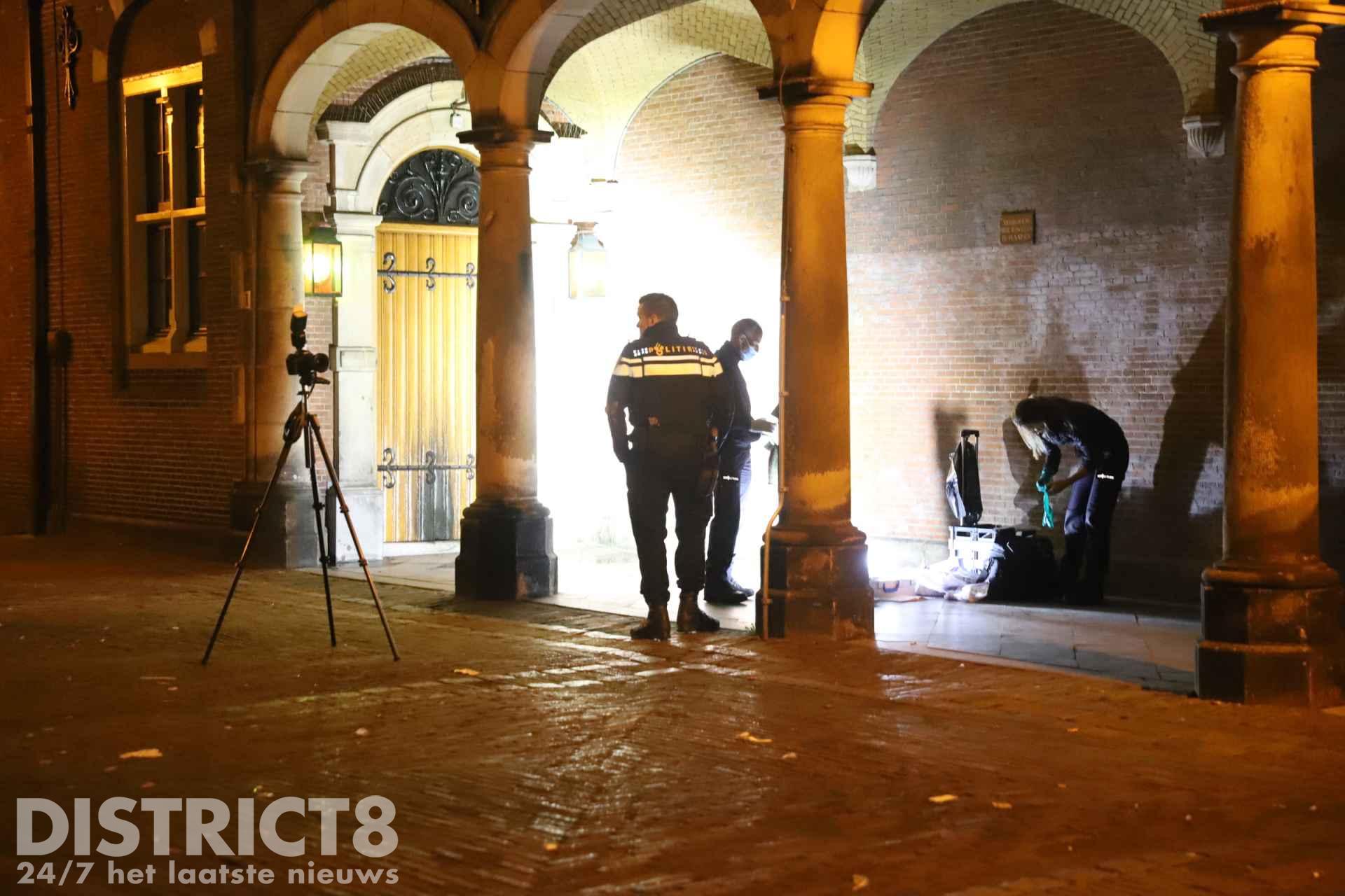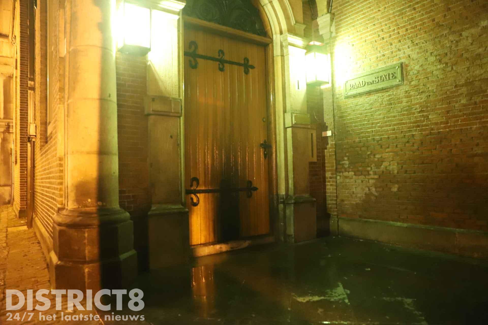 De man had op verschillende plekken op het Binnenhof een brandbare vloeistof gespoten en in brand gezet. Onder andere de deur van de Raad van State is hierdoor beschadigd.