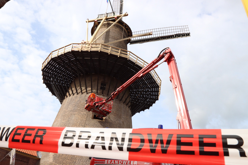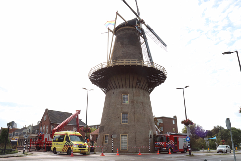 Een ambulance kwam ter plaatse en heeft de man in de molen behandeld aan zijn verwondingen. Omdat de brancard niet door de trap vervoerd kon worden, werd de brandweer ter plaatse verzocht.