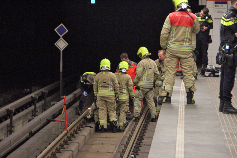 Het slachtoffer is overgebracht naar het ziekenhuis. Het metroverkeer heeft enige tijd stilgelegen.