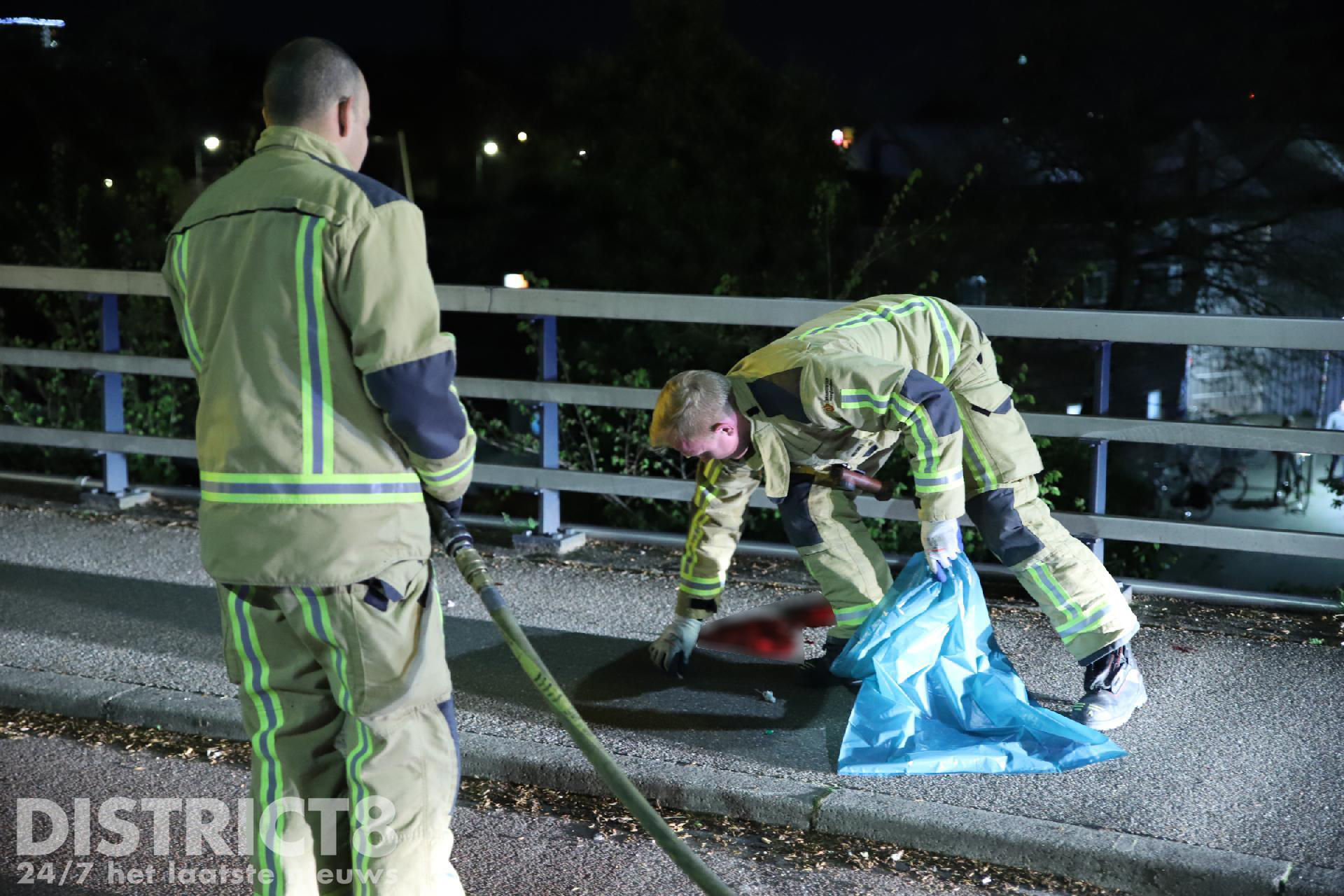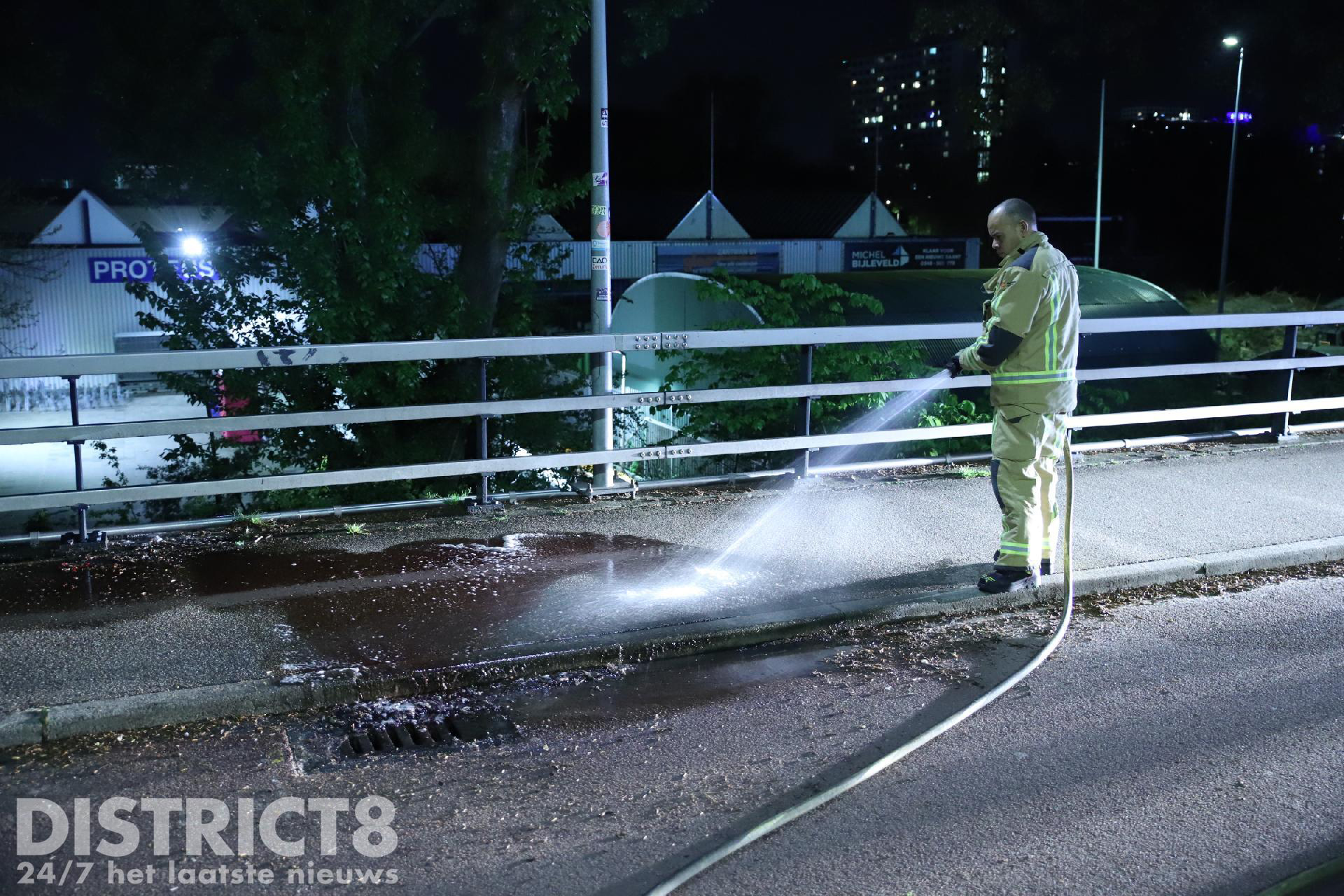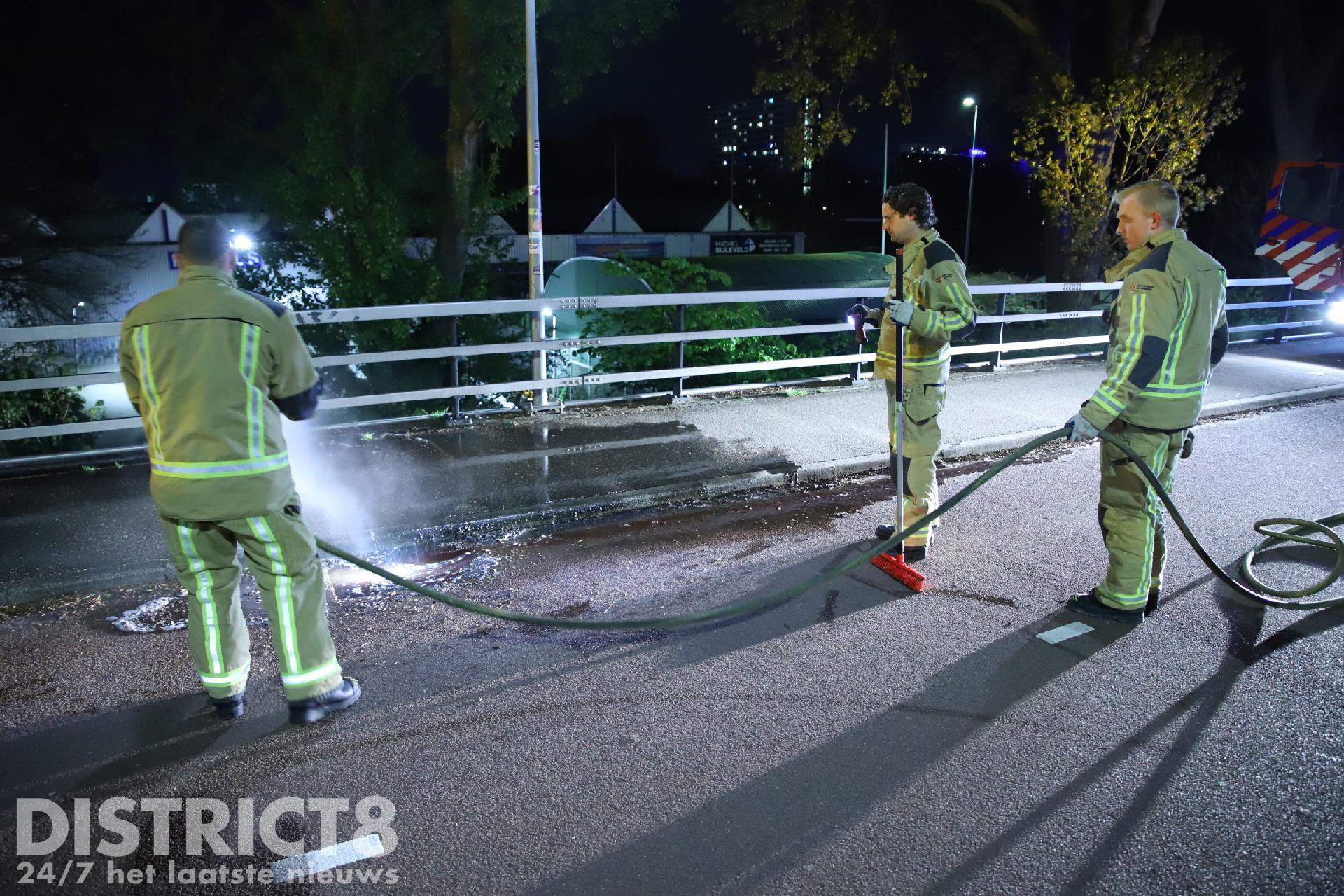 De brandweer heeft na het incident het wegdek schoongemaakt.