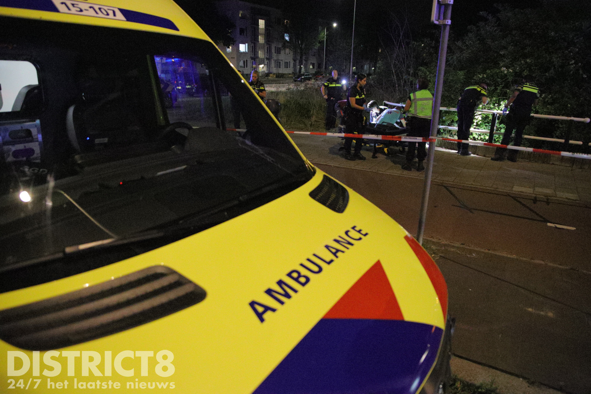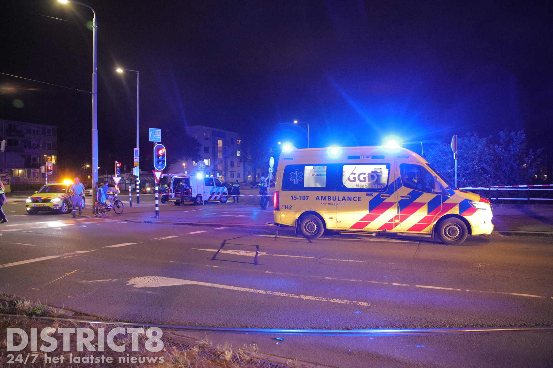 De gewonde man is na behandeling door het ambulancepersoneel met spoed overgebracht naar het Westeinde ziekenhuis in Den Haag.