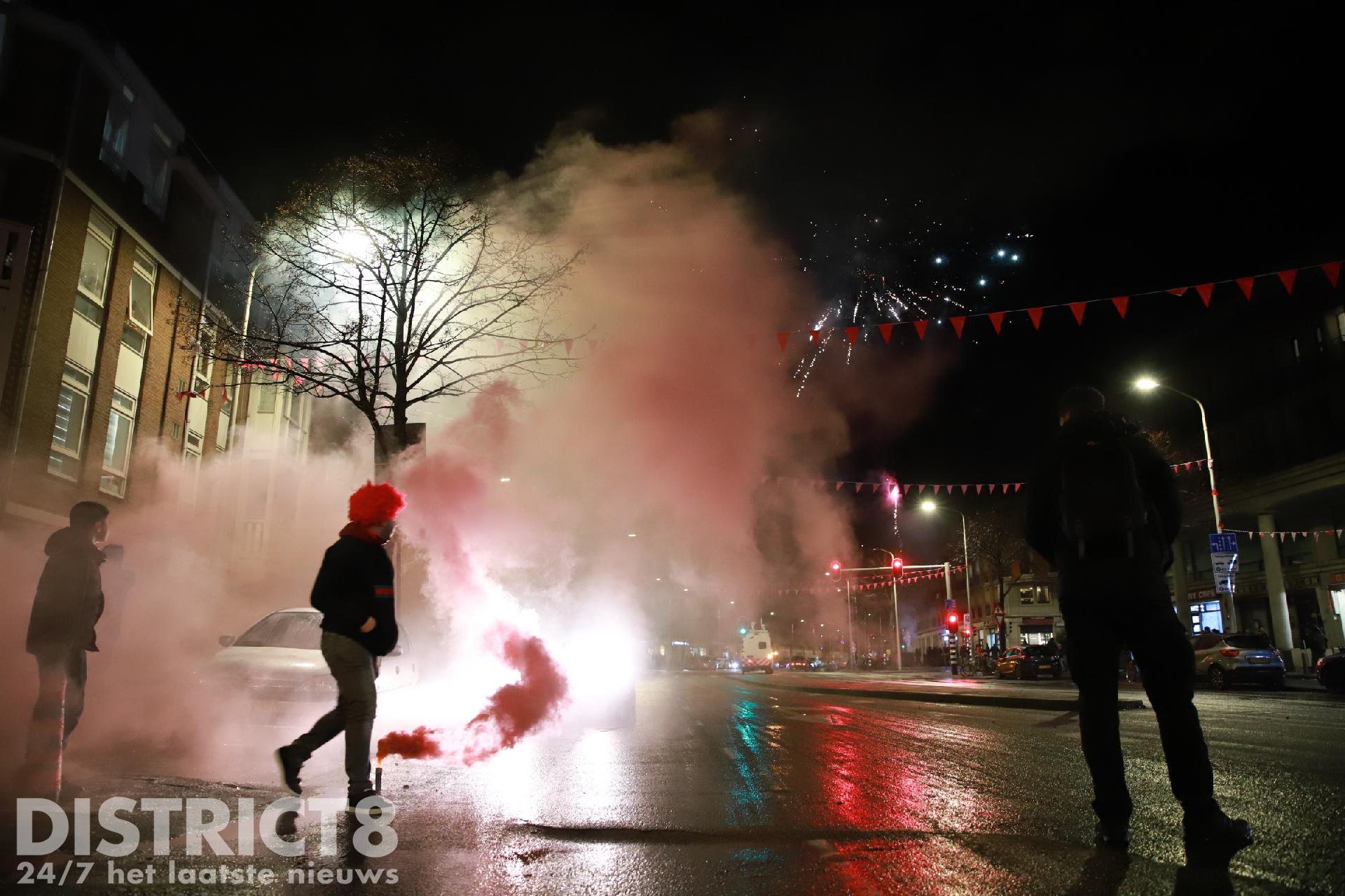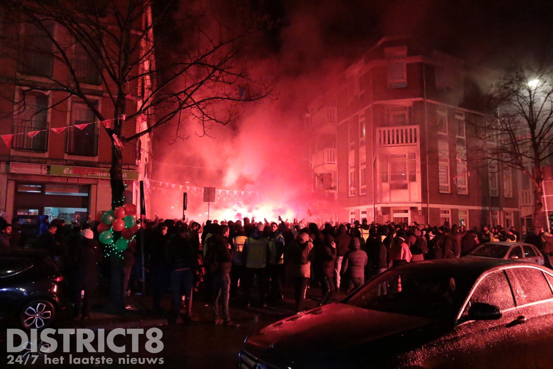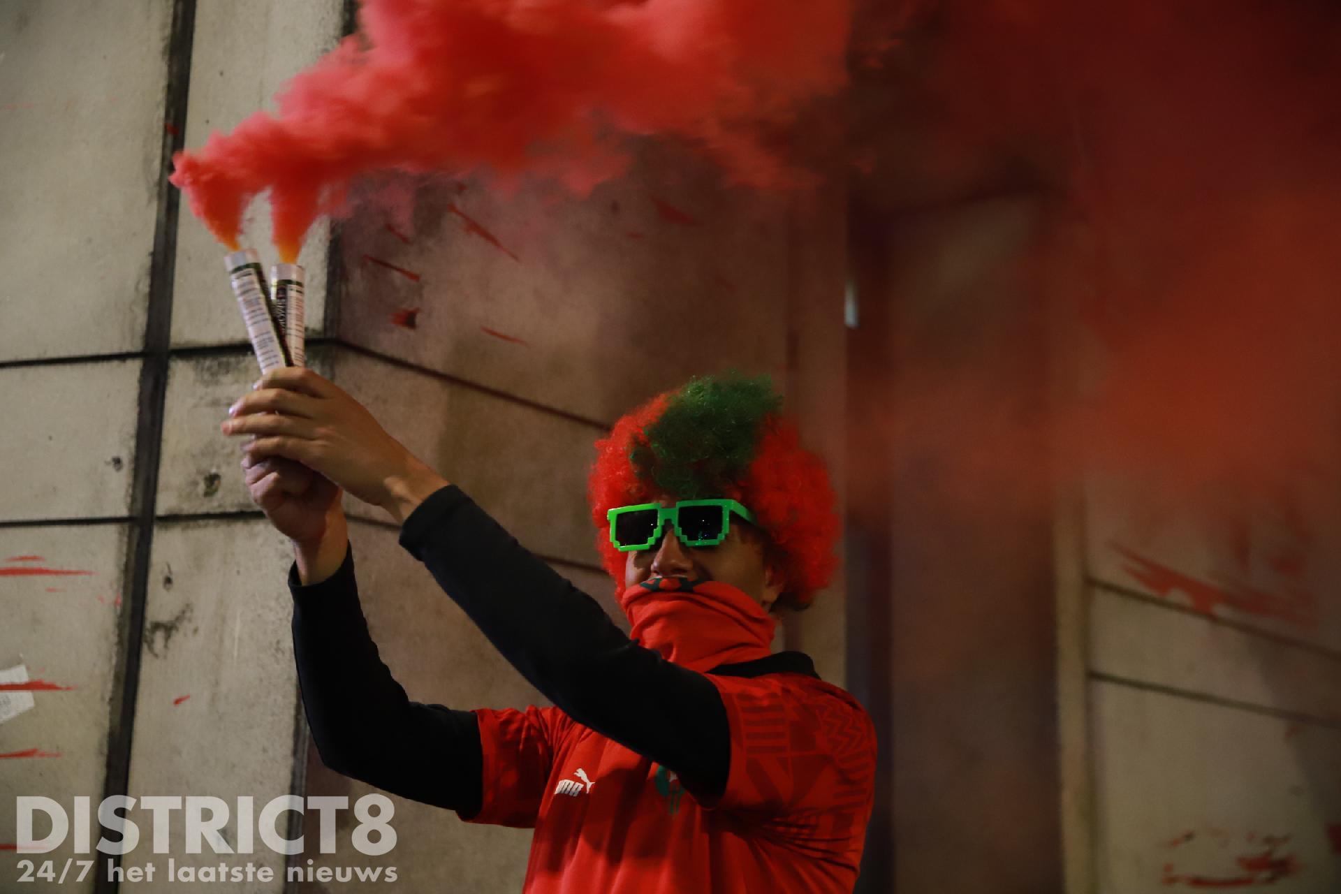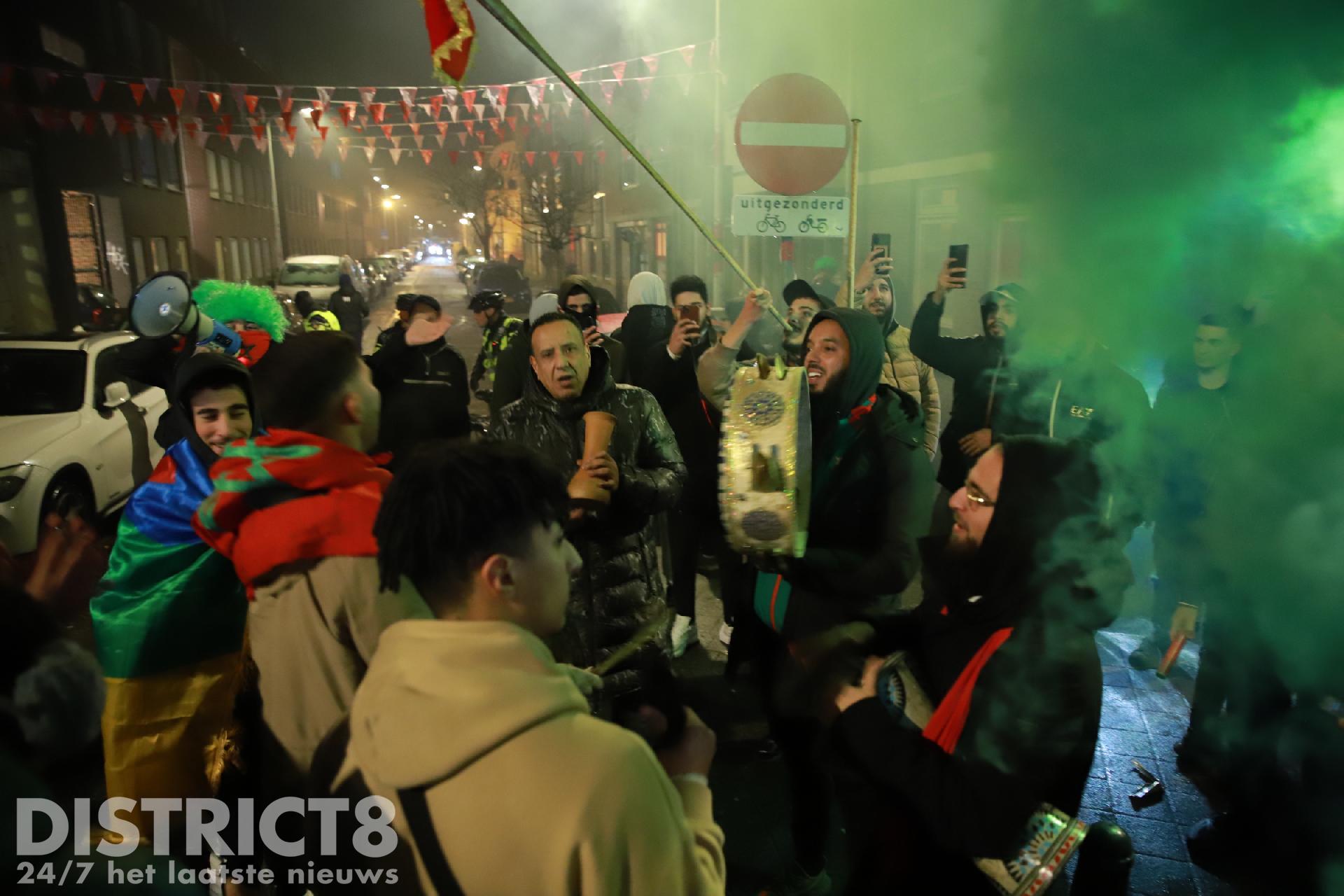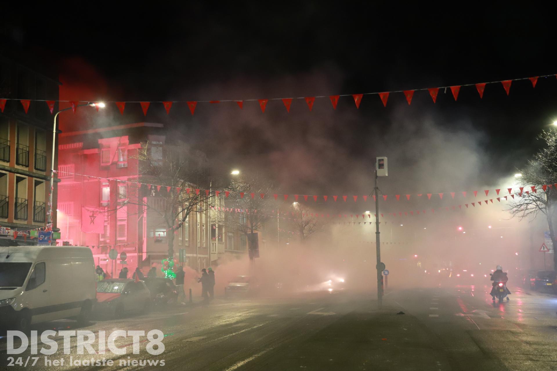 Al dagen is het onrustig in de Haagse Schilderswijk na wedstrijden van Marokko. Ook nu, ondanks het verlies, zijn mensen de straat opgegaan.
