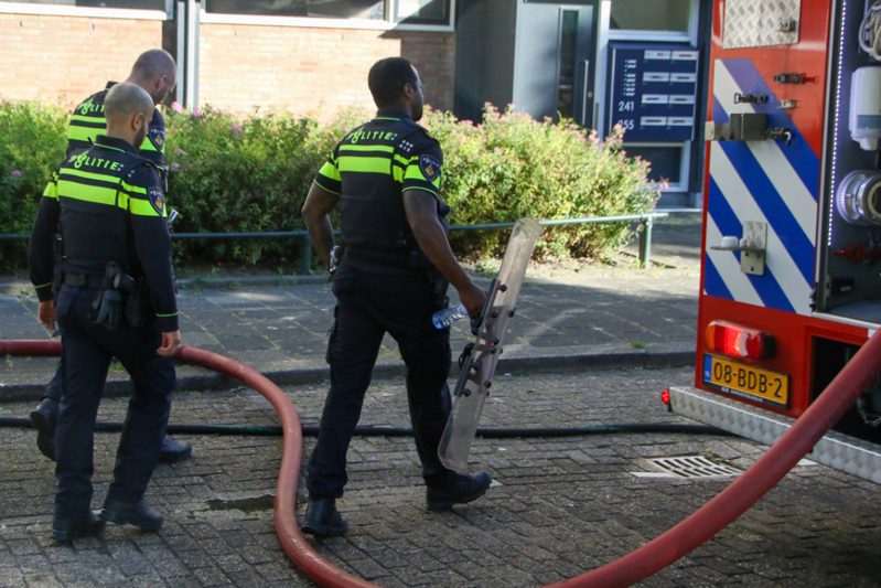 De brandweer heeft de woning en het portiek geventileerd en de woningen gecontroleerd op koolmonoxide.