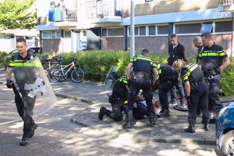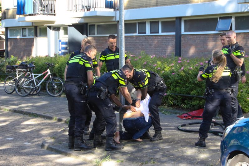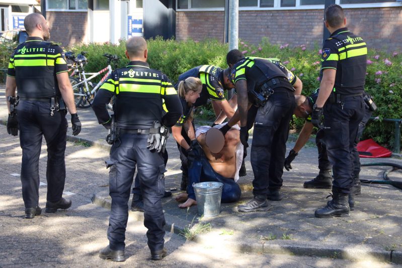 De man is met veel moeite geboeid op een brancard gelegd en onder politiebewaking overgebracht naar het ziekenhuis. Hij is gewond geraakt en zal hiervoor behandeld worden. Tevens zal er voor hem hulp ingeschakeld worden.