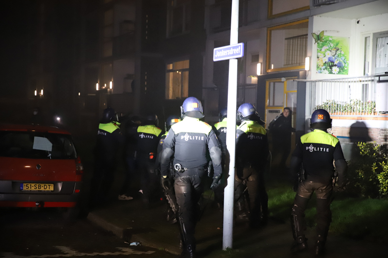 De Mobiele Eenheid (ME) heeft meerdere charges uitgevoerd ter plaatse. Hierbij zijn enkele rake klappen gevallen en het is erg onrustig in de wijk.
