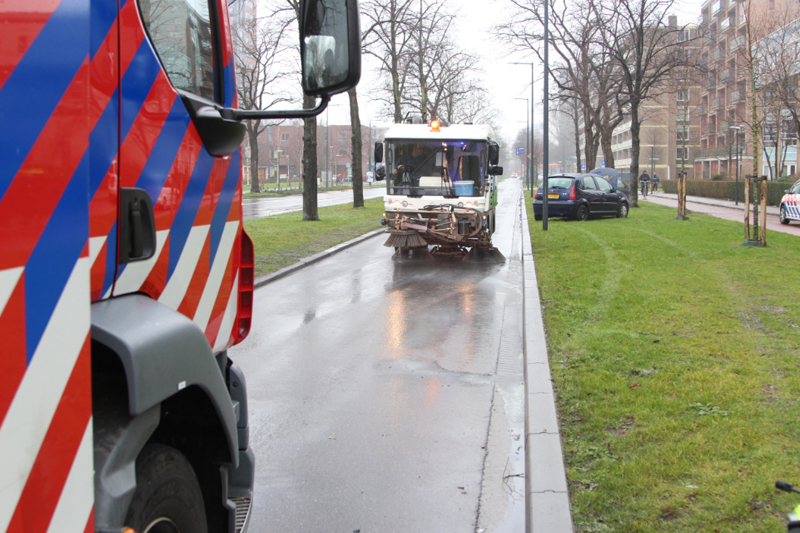 Schiedam – Op de Laan van Bol’es is woensdag brand ontstaan onder de motorkap van een personenauto. De bestuurder heeft de auto op het midden van de weg stilgezet en is uitgestapt om 112 te bellen. Medewerkers van een toevallig passerende veegwagen van Irado zagen het vuur en grepen direct naar de poederblusser. Onderhand werd ook nog een collega opgeroepen om te assisteren. Voordat de brandweer goed en wel ter plaatse was, was het vuur grotendeels uit en is er nog nageblust. Nadat de auto aan de kant geduwd was, heeft Irado nog even de weg schoongeveegd.