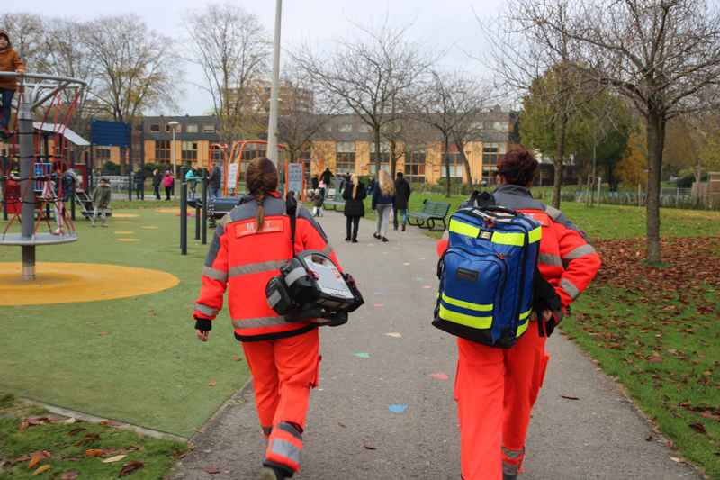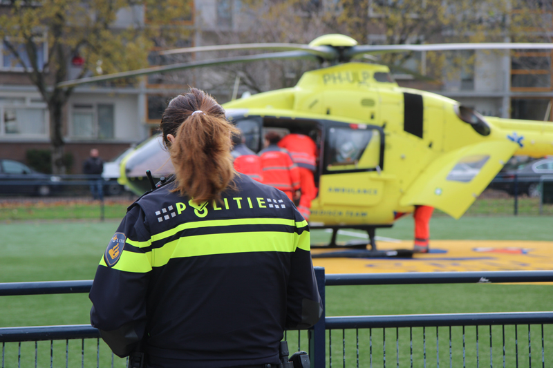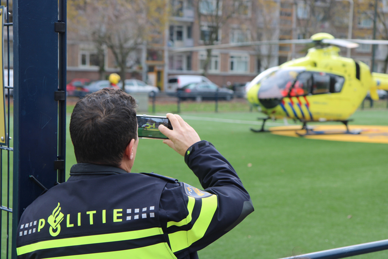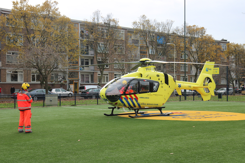 De traumahelikopter was geland op een speelveldje aan de Pachtersdreef. Het incident trok redelijk wat bekijks van omwonenden.