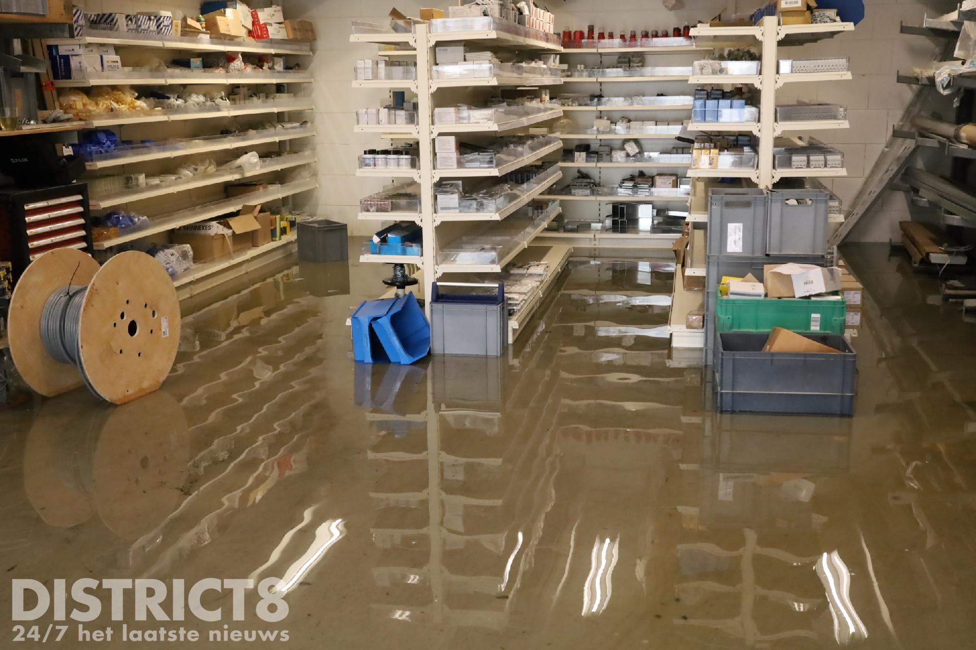 Zo liepen er meerdere bedrijfspanden aan de Gezelstraat in Naaldwijk vol met water.