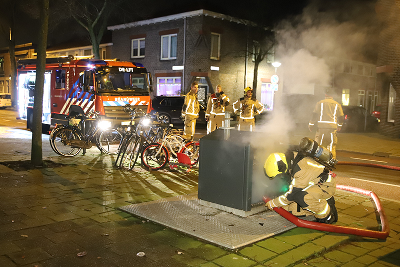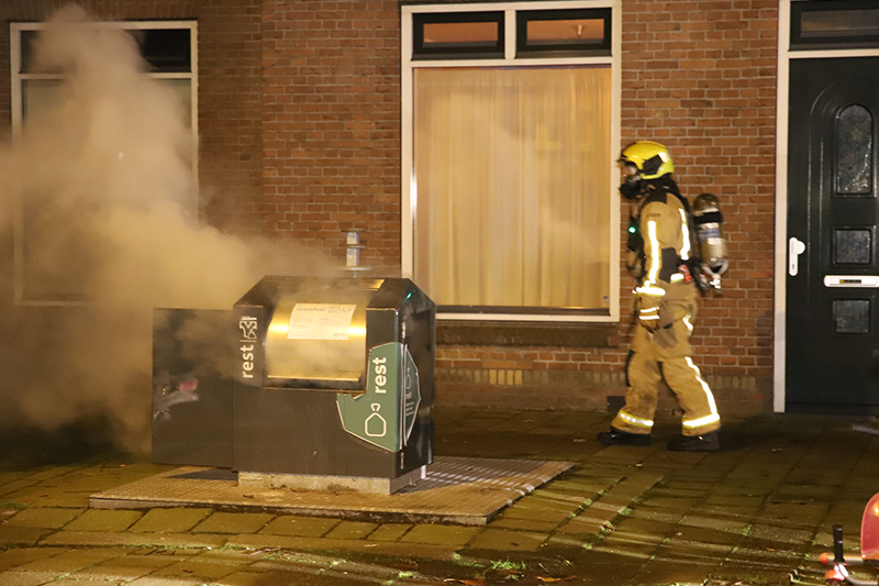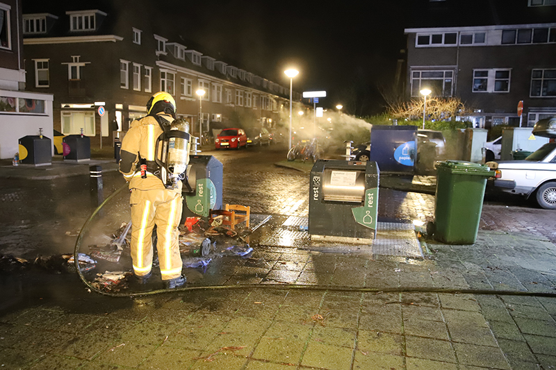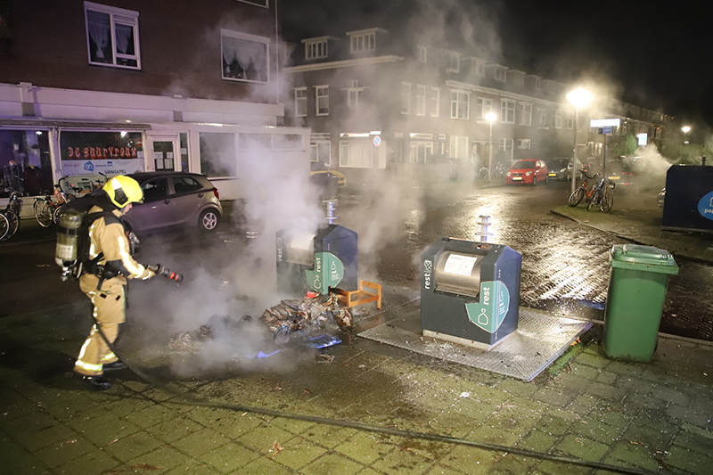 Op het moment dat de brandweer bijna klaar was met blussen kwamen surveillerende agenten om de hoek, op de Brasserskade, ook een brandende ondergrondse container tegen. De brandweer heeft deze container gevuld met water.