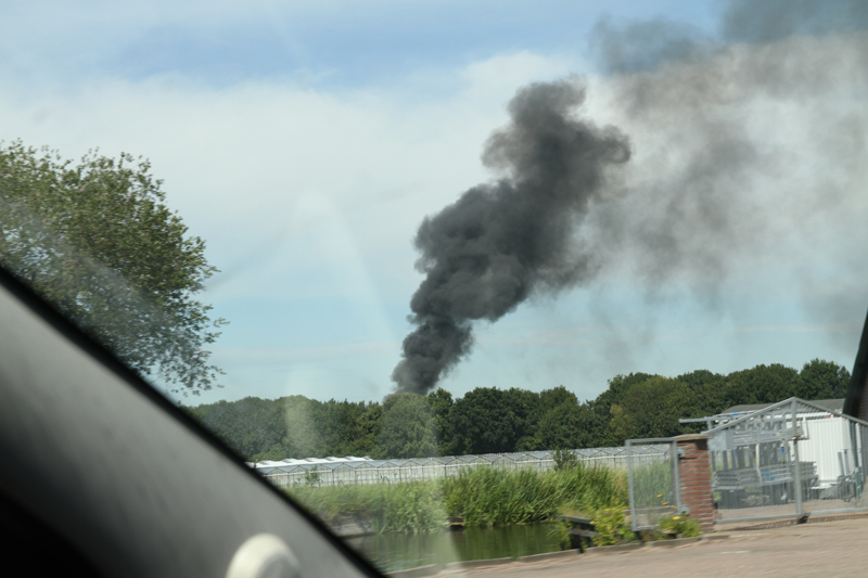 Bij de brand komt flinke rookontwikkeling vrij, dit is in verre omtrek te zien.