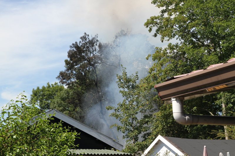 Volgens de woordvoerder van de brandweer zou er een tuinhuisje in de brand staan.