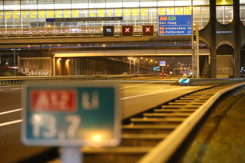 De Verkeers Ongevallen Analyse (VOA) van de politie doet onderzoek op de A12, verkeer heeft hierdoor enige hinder.