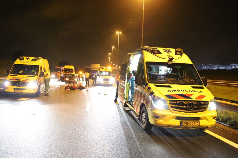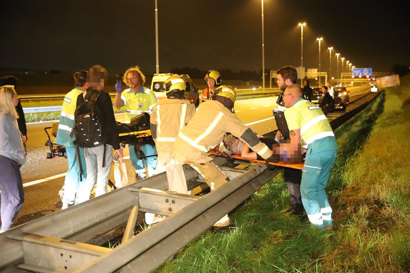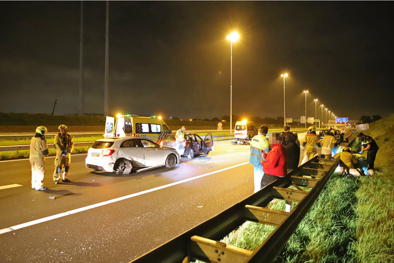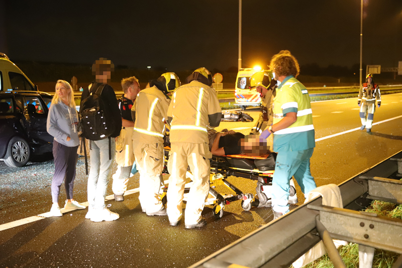 Na de melding werden direct vier ambulance’s, de brandweer, politie en Rijkswaterstaat ter plaatse gestuurd. Ter plaatse bleek een van de inzittende van de zwarte auto flinke verwondingen opgelopen te hebben, de vrouw is door ambulancepersoneel gestabiliseerd, hierna is de vrouw met spoed vervoerd naar een ziekenhuis in Rotterdam. Twee andere ambulance’s hebben de overige betrokkenen nagekeken, de motorrijder kwam er zonder kleerscheuren van af.
