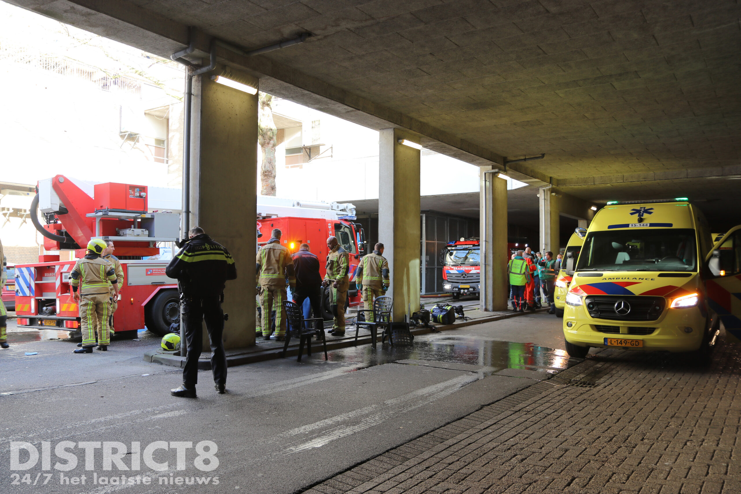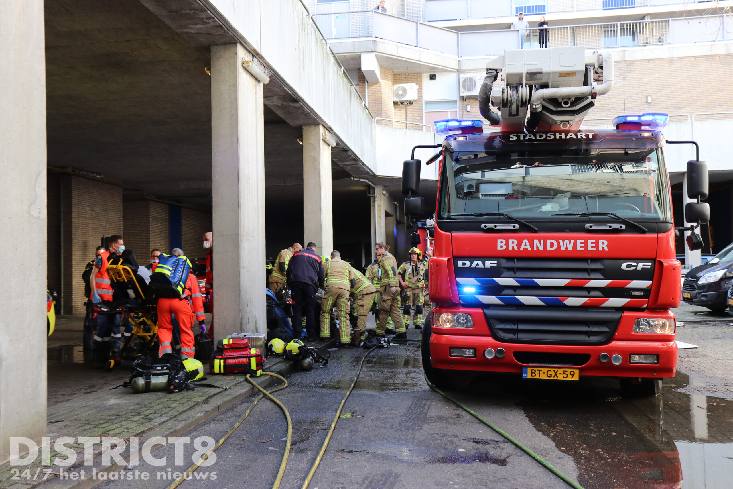 De brandweer schaalde het incident op naar sein ‘grote brand’. Er zijn vier personen behandeld en vervoerd naar het ziekenhuis, enkele daarvan zijn met spoed en onder motorbegeleiding vervoerd.