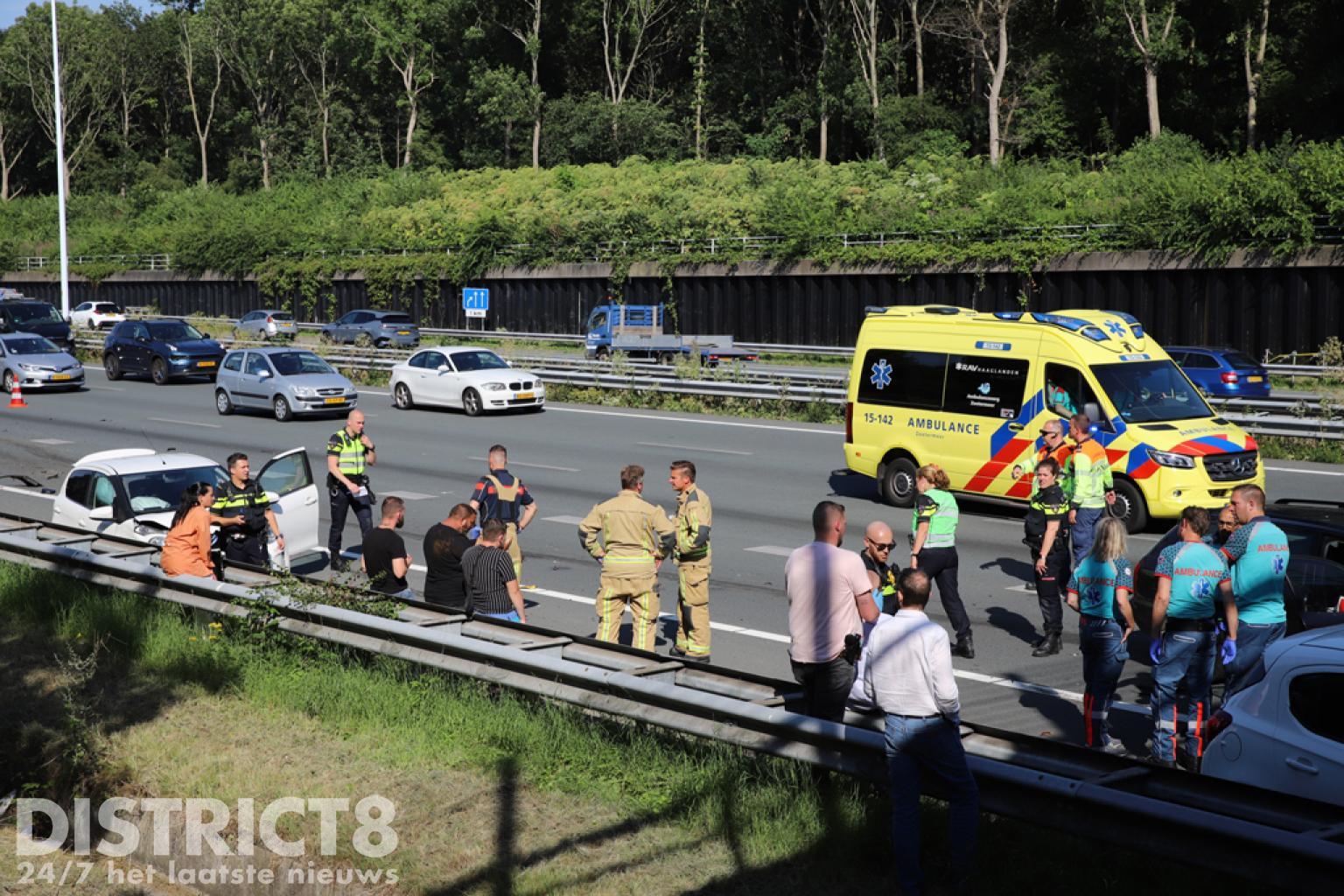 De aanrijding vond plaats net voor de afrit naar de Prinses Beatrixlaan.