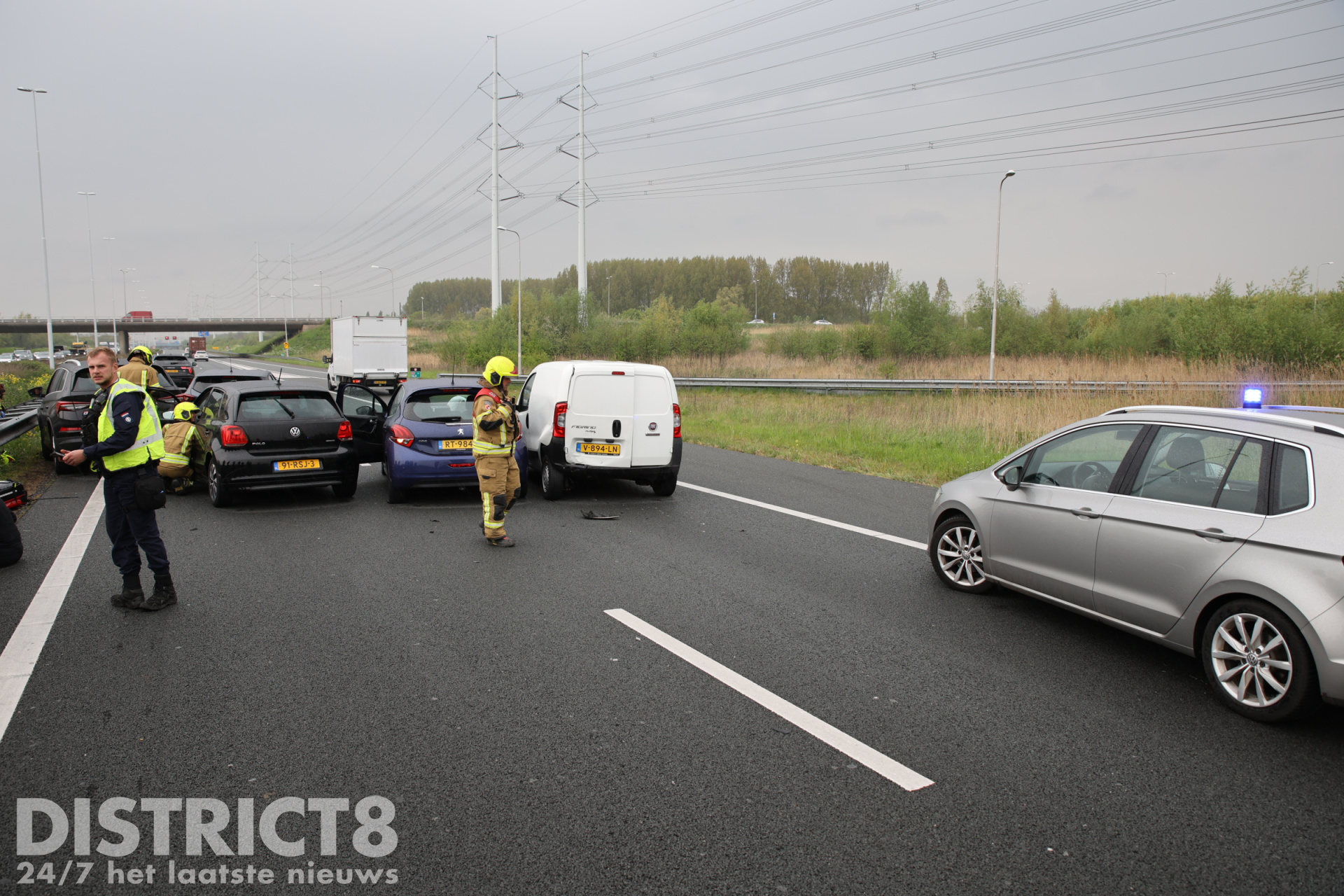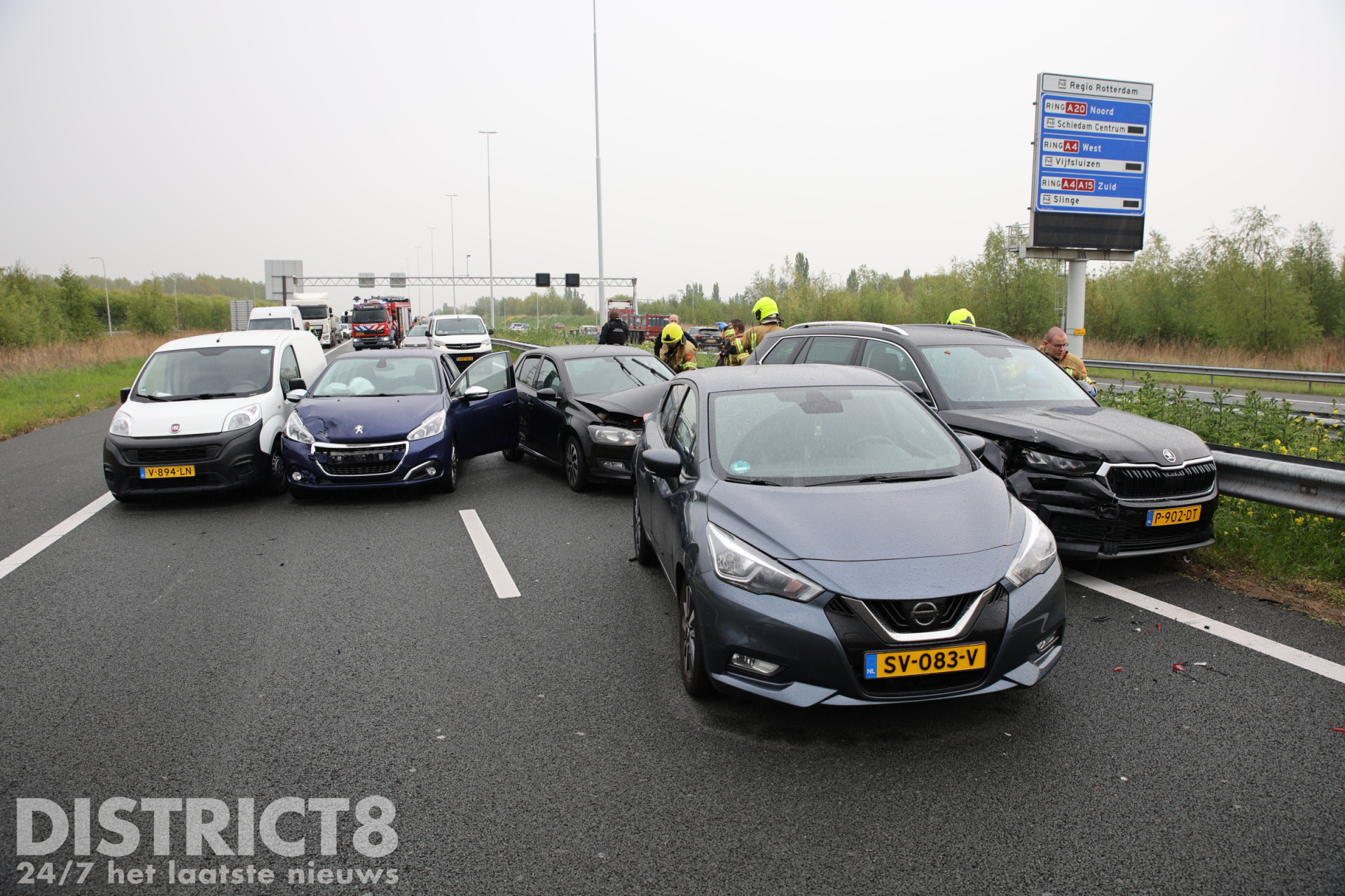 Schipluiden – Op de A4 ter hoogte van Schipluiden, in de richting van Den Haag, heeft woensdagmiddag 23 april een aanrijding plaatsgevonden waarbij vijf voertuigen betrokken waren.