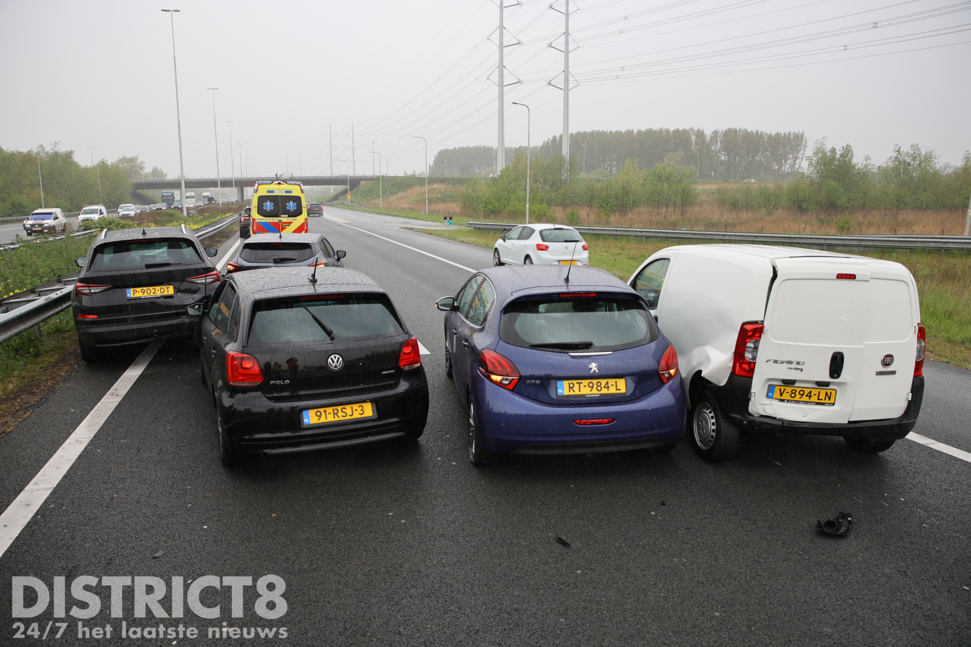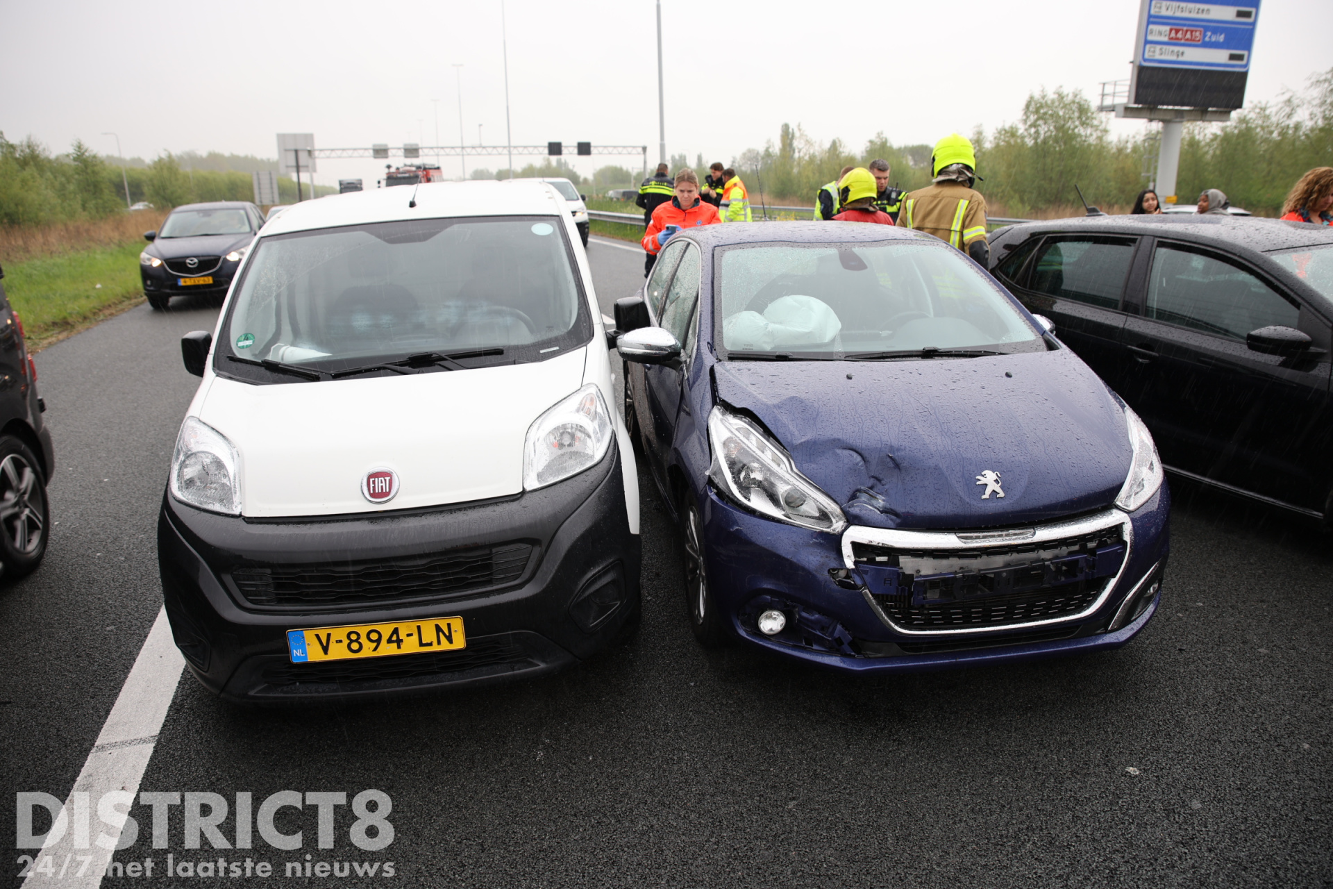Omstreeks 14:50 klapte op de meest rechter rijstrook richting Den Haag drie auto’s op elkaar, een achterop komende automobilist schrok en week uit. Hierbij ramde deze een wit busje wat op de naastgelegen rijbaan reed. Door de klap raakten meerdere personen lichtgewond. Diverse hulpdiensten, waaronder de brandweer, politie en ambulance, kwamen met spoed ter plaatse.