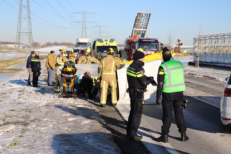 Een van de voertuigen kwam na de aanrijding op z’n kop terecht, na het ongeval werden de brandweer, politie en meerdere ambulances met spoed gealarmeerd. Ook werd de traumahelikopter uit Rotterdam gealarmeerd.