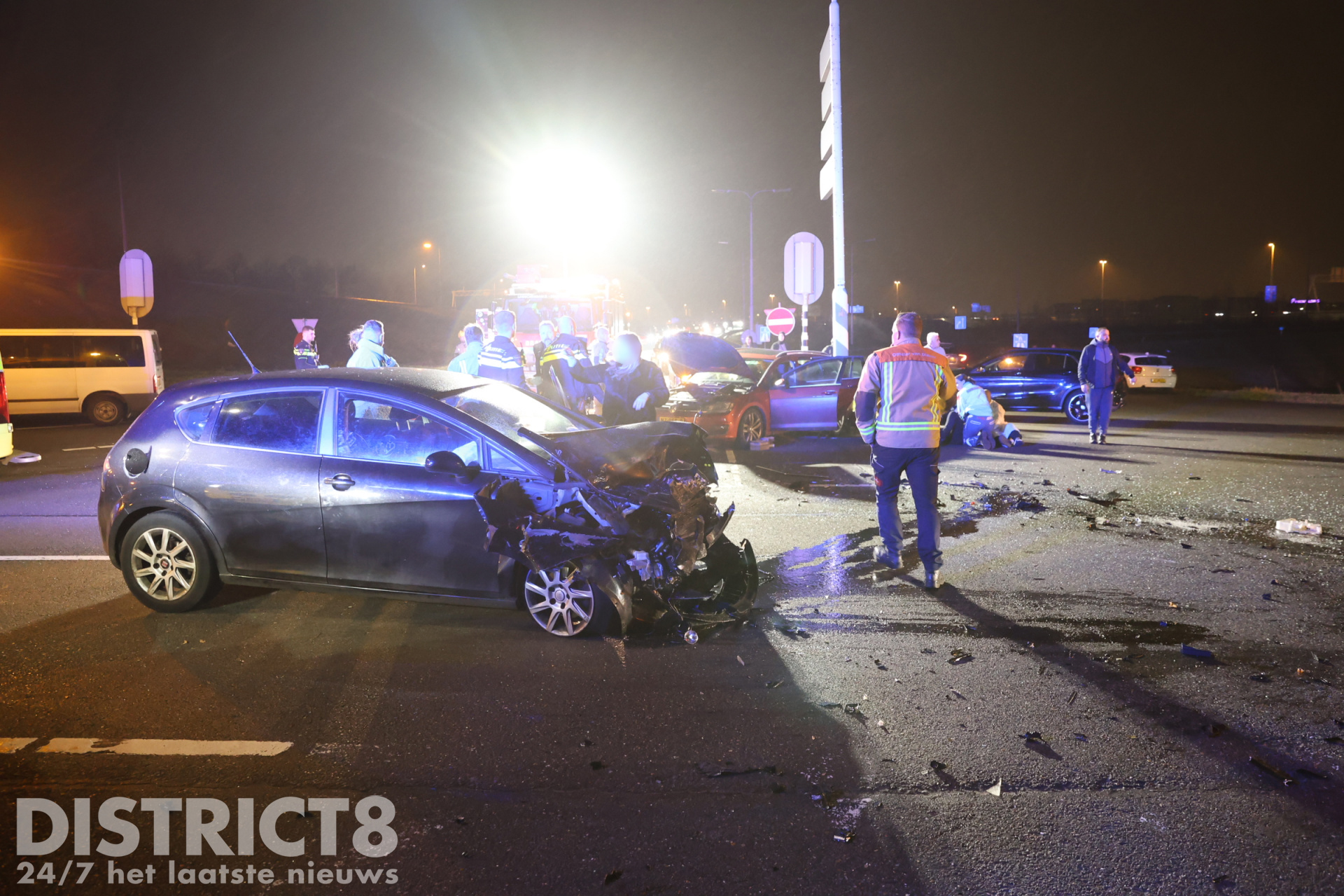 Het ongeval vond plaats in de avonduren en betrof twee personenauto’s. Eén van de inzittenden raakte bekneld in het voertuig en moest door de brandweer worden bevrijd. Voor de medische zorg werden in totaal vijf ambulances ingezet. Om de hulpverlening veilig en ongehinderd te laten verlopen, werd de weg in één richting afgesloten.