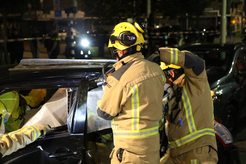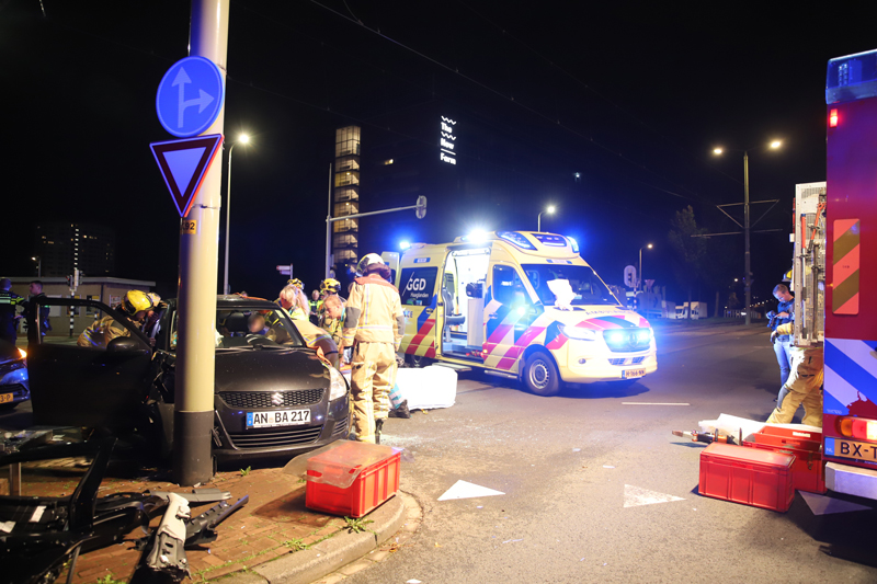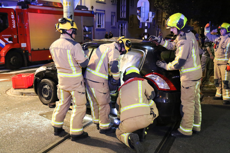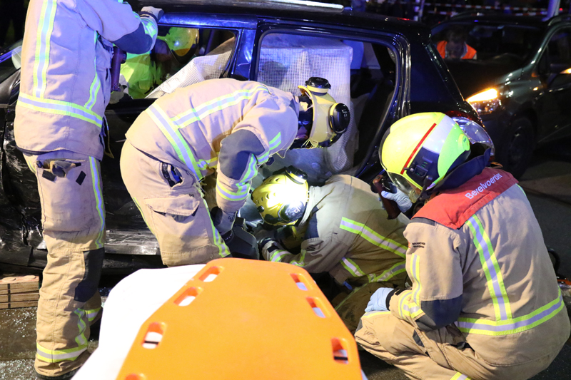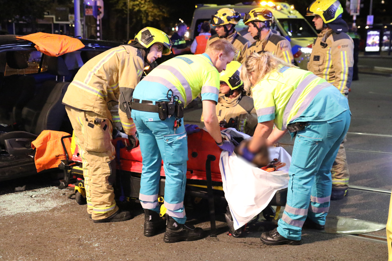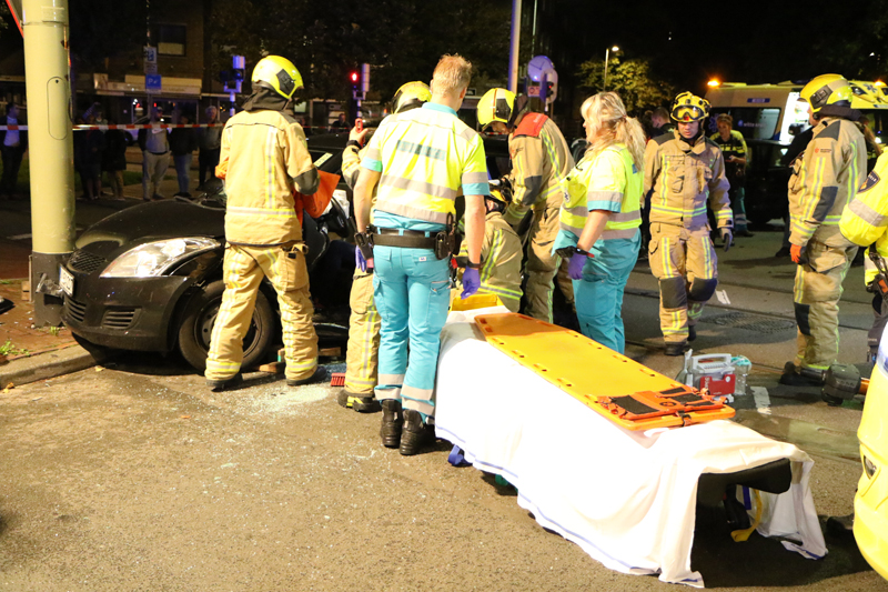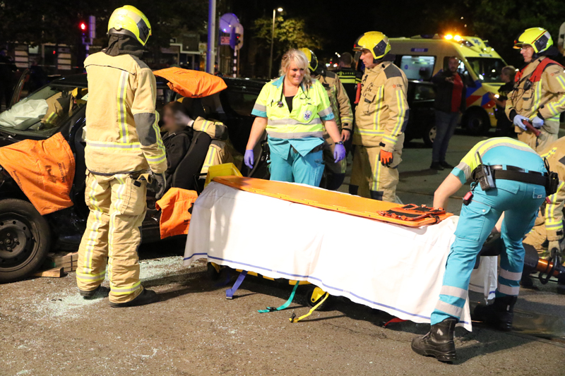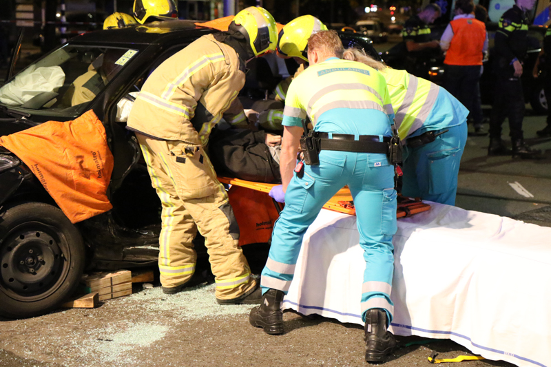 De brandweer kwam met spoed ter plaatse en heeft de voor- en achterdeur van de bestuursterkant weggeknipt zodat het ambulancepersoneel het slachtoffer met een wervelplank uit de auto kon halen.