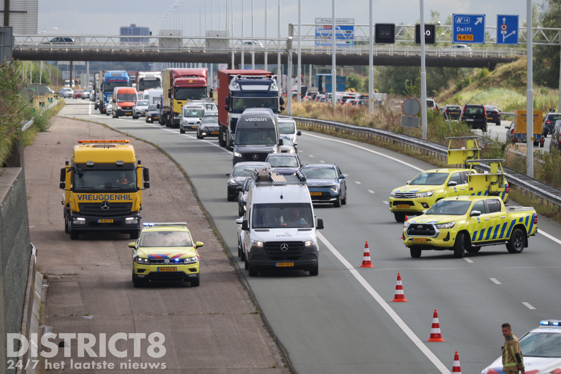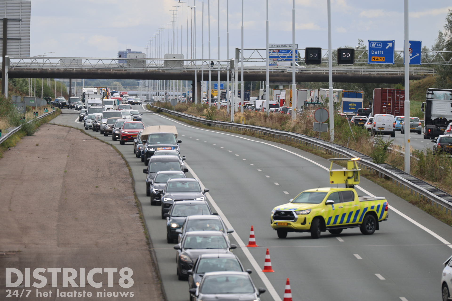 Even voor twee uur ging het flink mis. Door nog onbekende oorzaak ontstond er een file op de A4 in de richting van Den Haag. Net voor het aquaduct bij Den Hoorn ontstond er door de filevorming een kettingbotsing tussen vijf voertuigen.