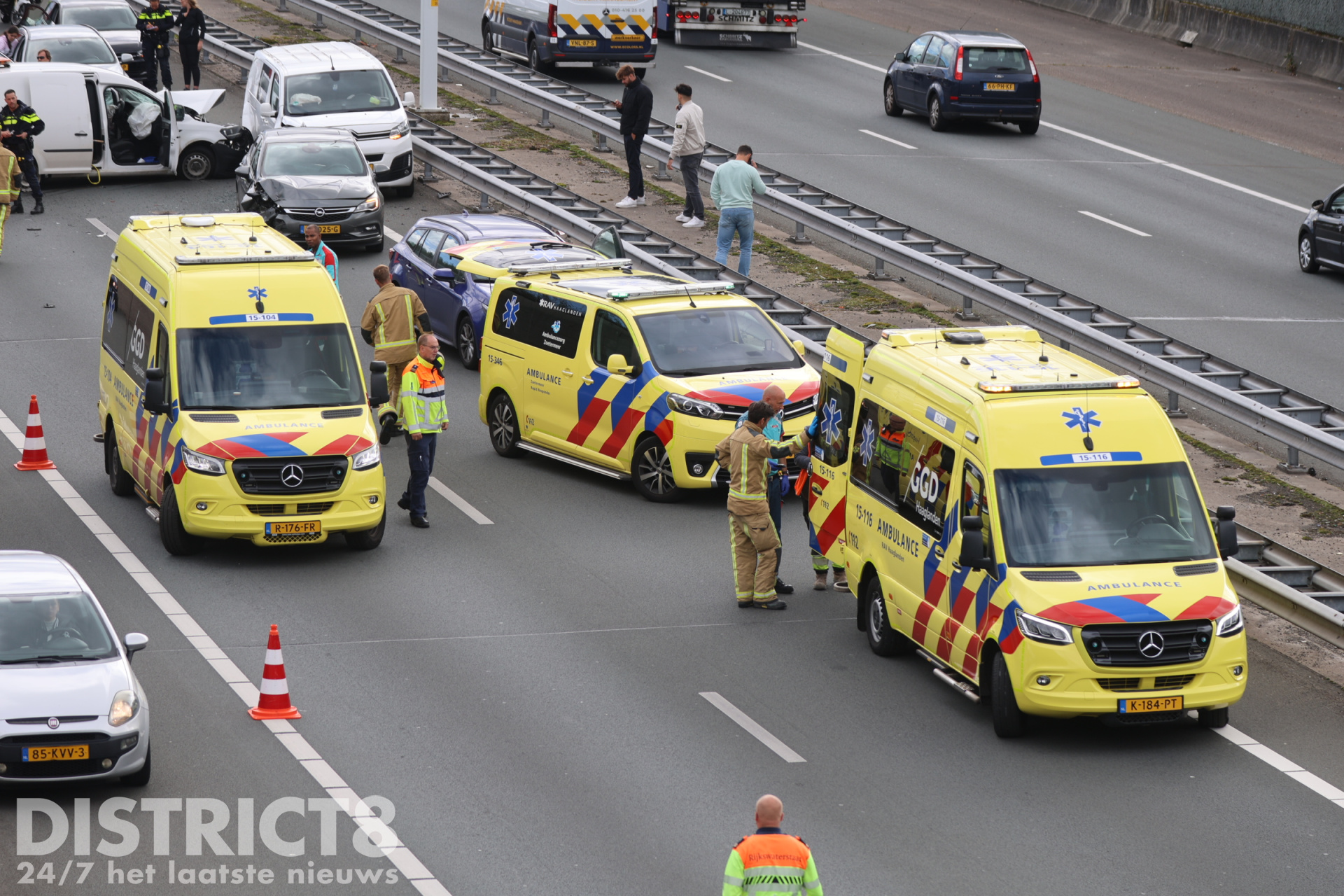 Den Hoorn – Op de A4 bij Den Hoorn zijn vrijdagmiddag 13 september meerdere gewonden gevallen. Dit gebeurde toen vijf voertuigen met elkaar in botsing kwamen.