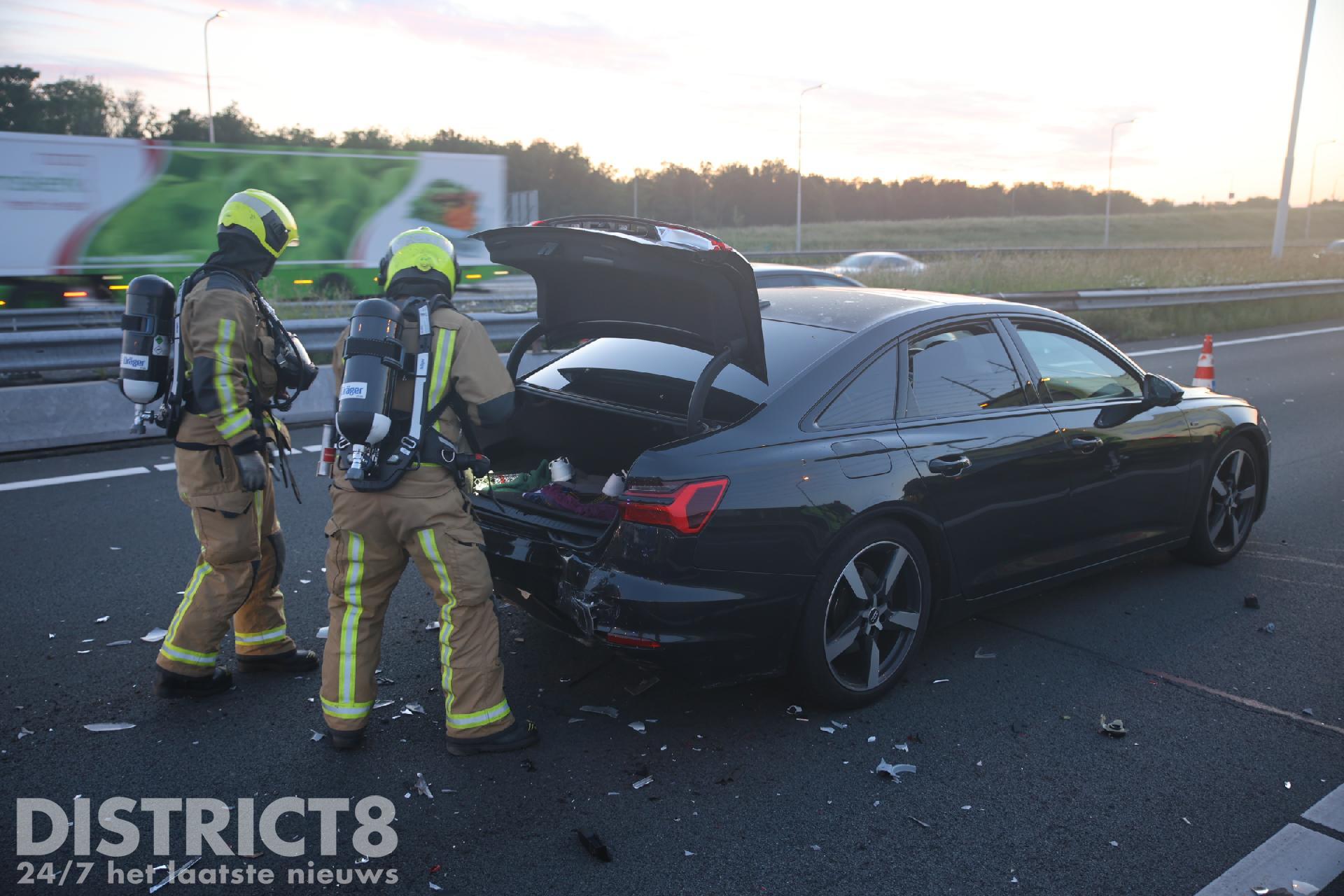 De brandweer heeft bij aankomst beide voertuigen gecontroleerd omdat er sprake was van rookontwikkeling. Rijkswaterstaat sloot inmiddels 1 rijstrook af richting Amsterdam om een veilige werkruimte te creëren.