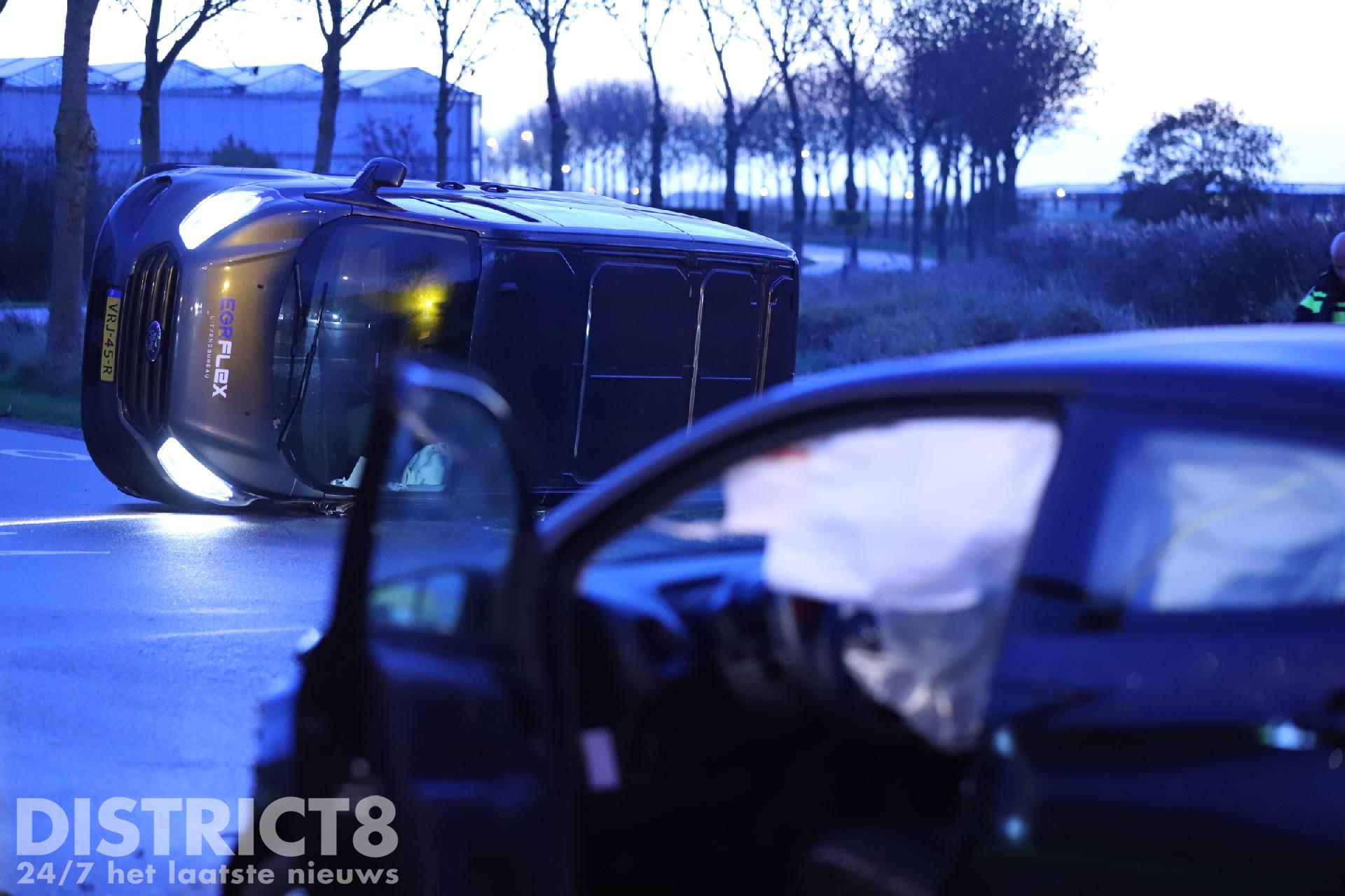 De Lier – Woensdagochtend 23 november zijn meerdere mensen gewond geraakt bij een aanrijding tussen een busje en een auto op de kruising van de Burgerweg met de Scheeweg in De Lier. Rond de klok van 7 uur kwamen beide voertuigen met elkaar in botsing op de kruising.