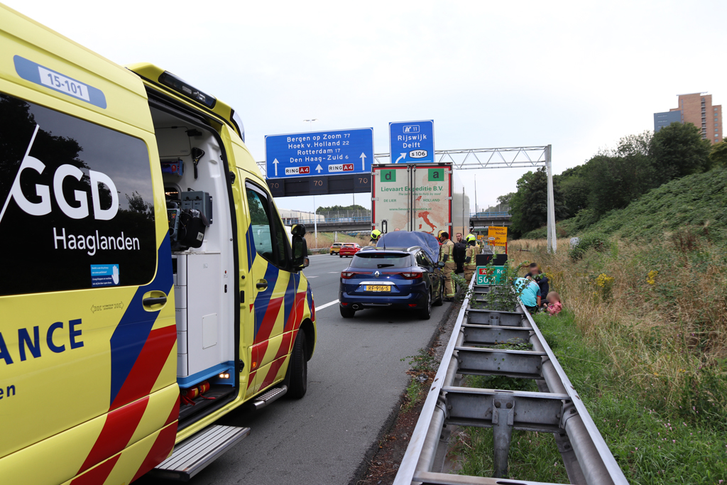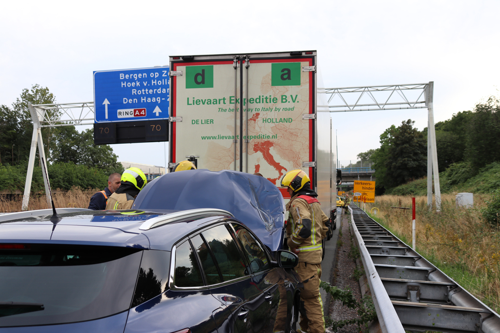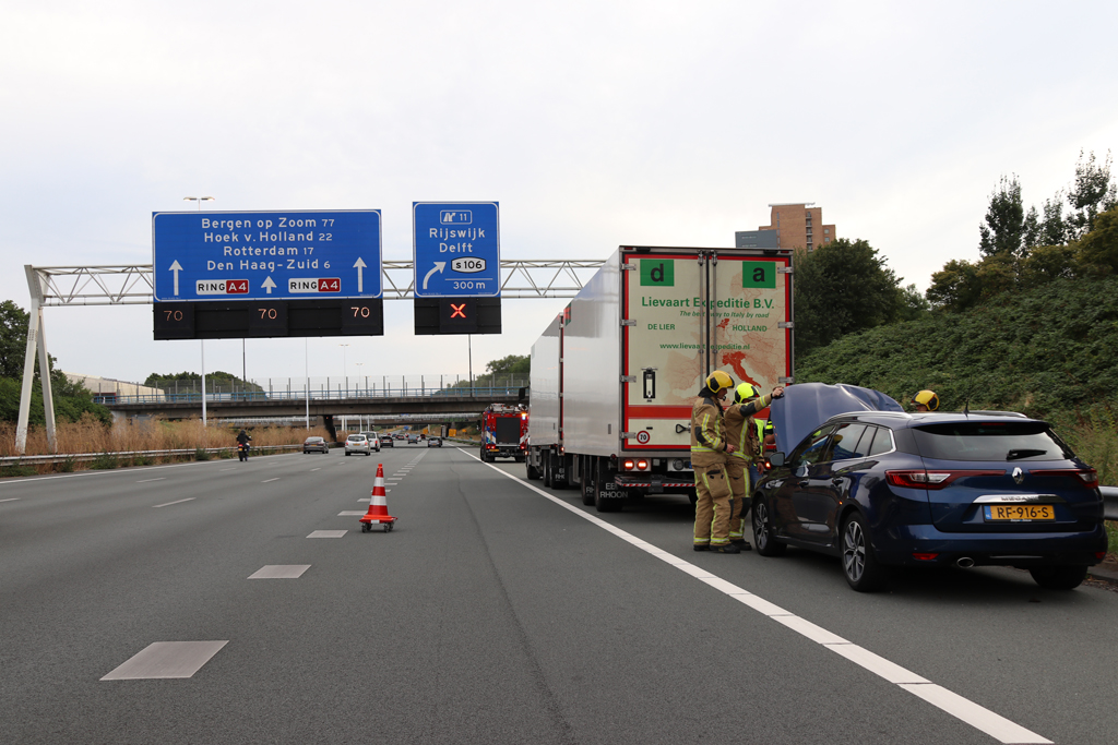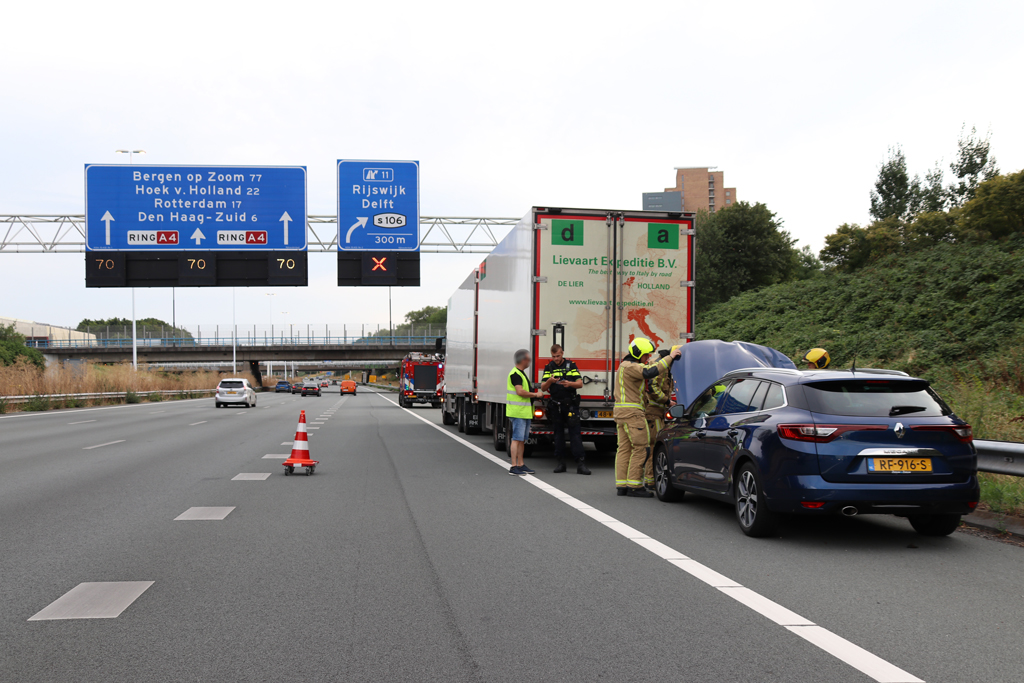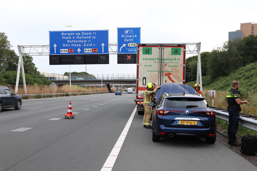 Rijswijk – Zondagavond zijn een vrachtwagen en een automobilist met elkaar in botsing gekomen op de A4 t.h.v. Rijswijk.
