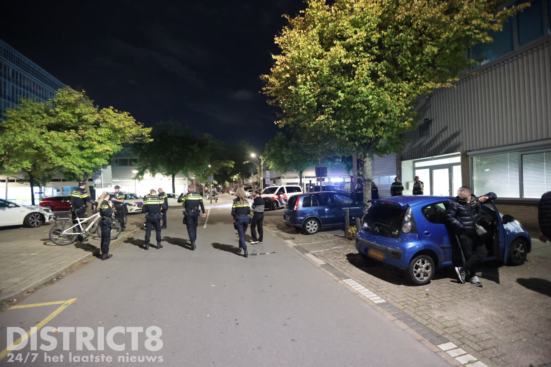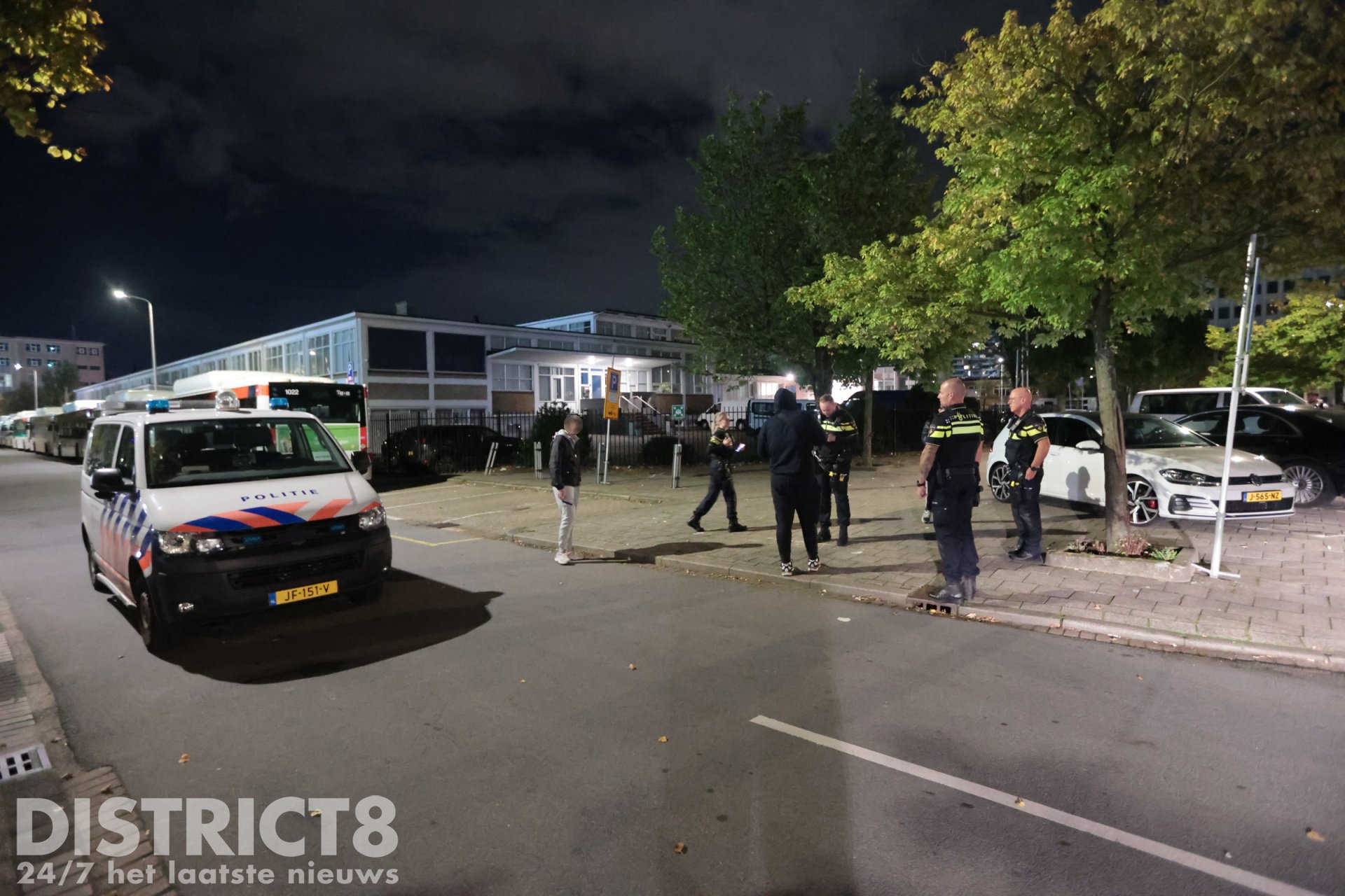 Bij de politie kwamen hierover meerdere meldingen binnen. De politie schaalde groots op en kwam met meerdere eenheden ter plaatse. Bij aankomst van de politie-eenheden besloot een scooter met daarop twee personen de plek te verlaten. Zij konden later op de kruising van de Fruitweg en de Televisiestraat staande worden gehouden. Ook de twee heren zijn gecontroleerd. Aldaar is een grotere groep jongeren gecontroleerd en gefouilleerd. Voor zover bekend is er bij de controle en fouillering niets aangetroffen.
