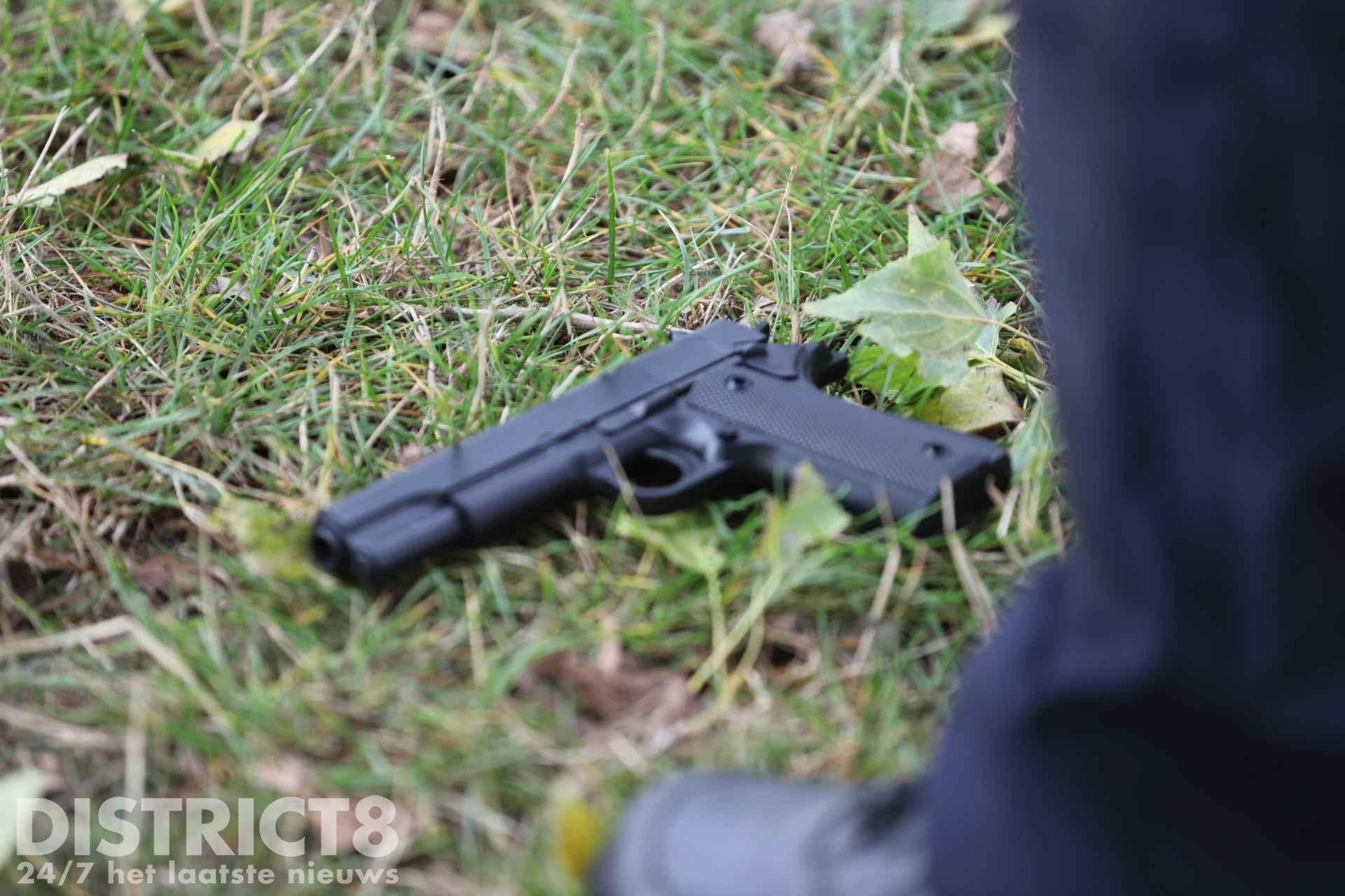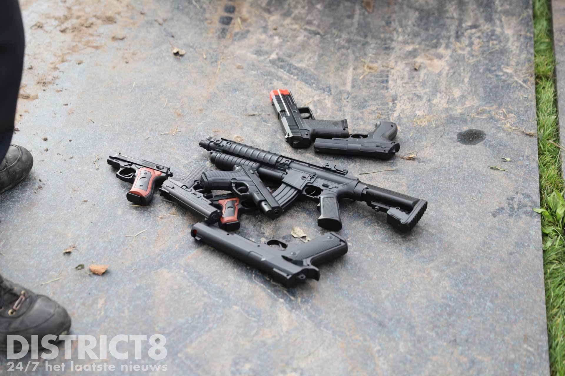 Toen de politie arriveerde sloegen de jongeren op de vlucht, de nepvuurwapens werden weggegooid en verstopt onder meerdere voertuigen.